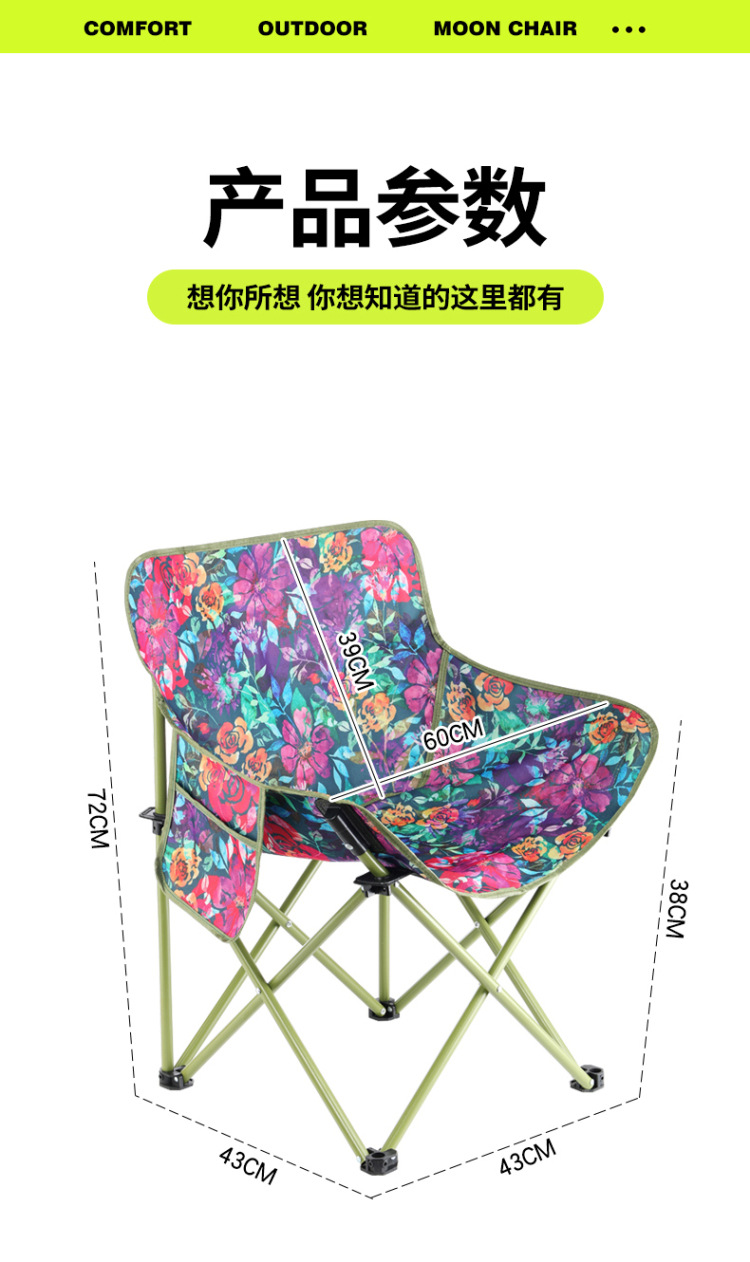 야외 휴대용 접이식 의자 캠핑 피크닉 접는 의자 다채로운 빈티지 컬러 문 의자 휴대용 리콜기