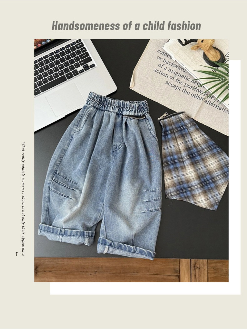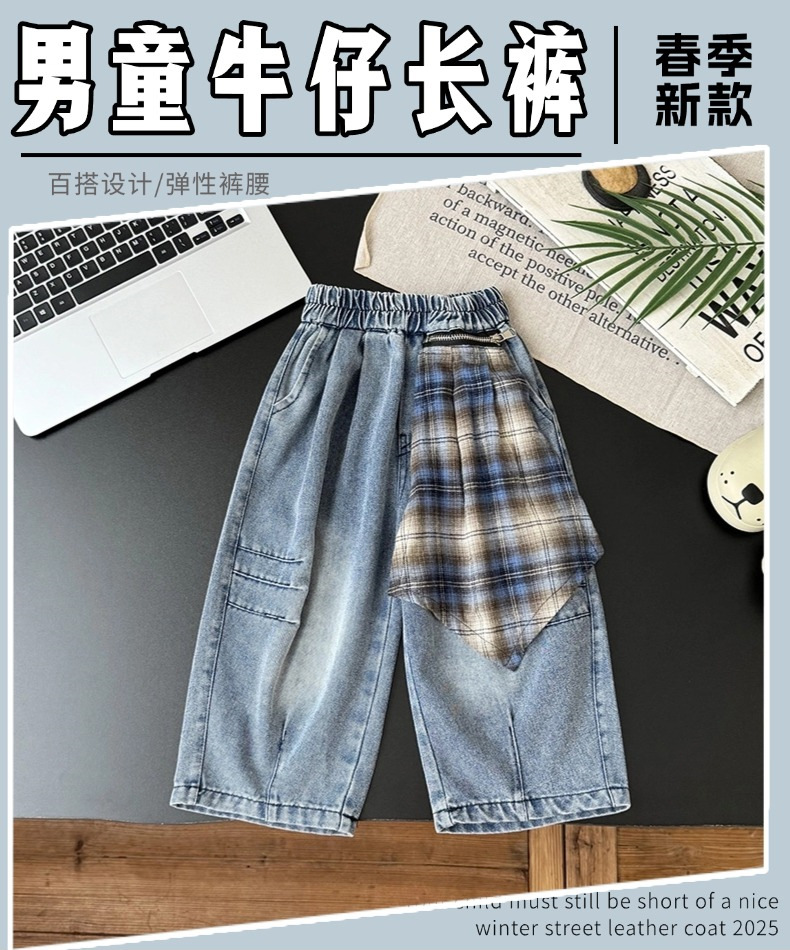 아동용 청바지 2025 가을 신상 남녀 아기 격자무늬 스플라이싱 스트레이트 캐주얼 바지 트렌디 팬츠스토어 가기