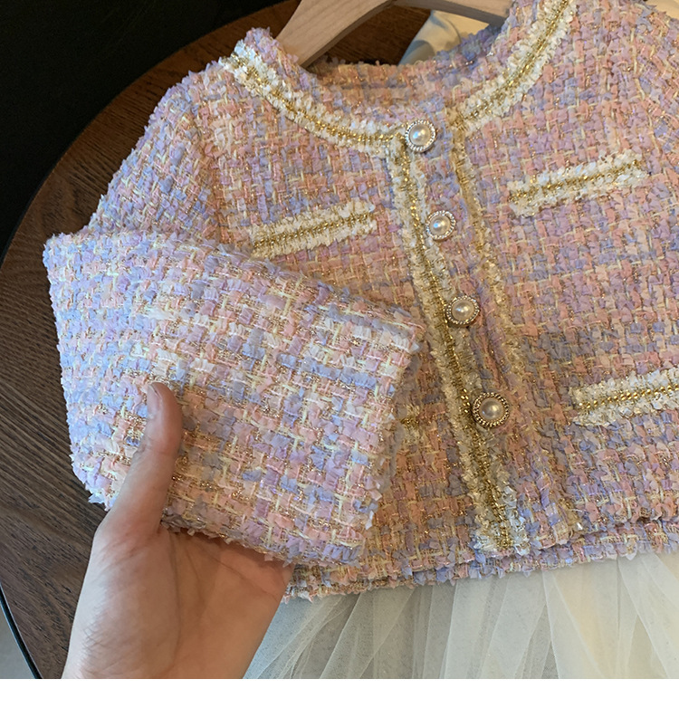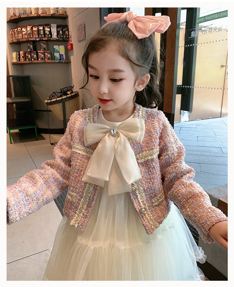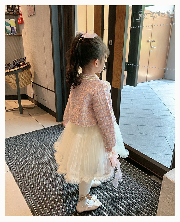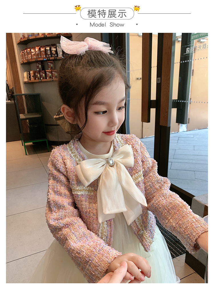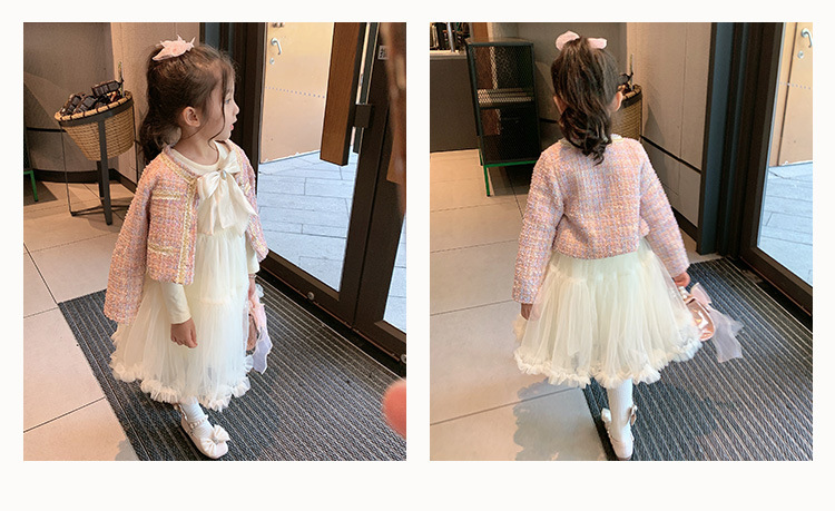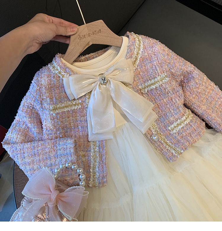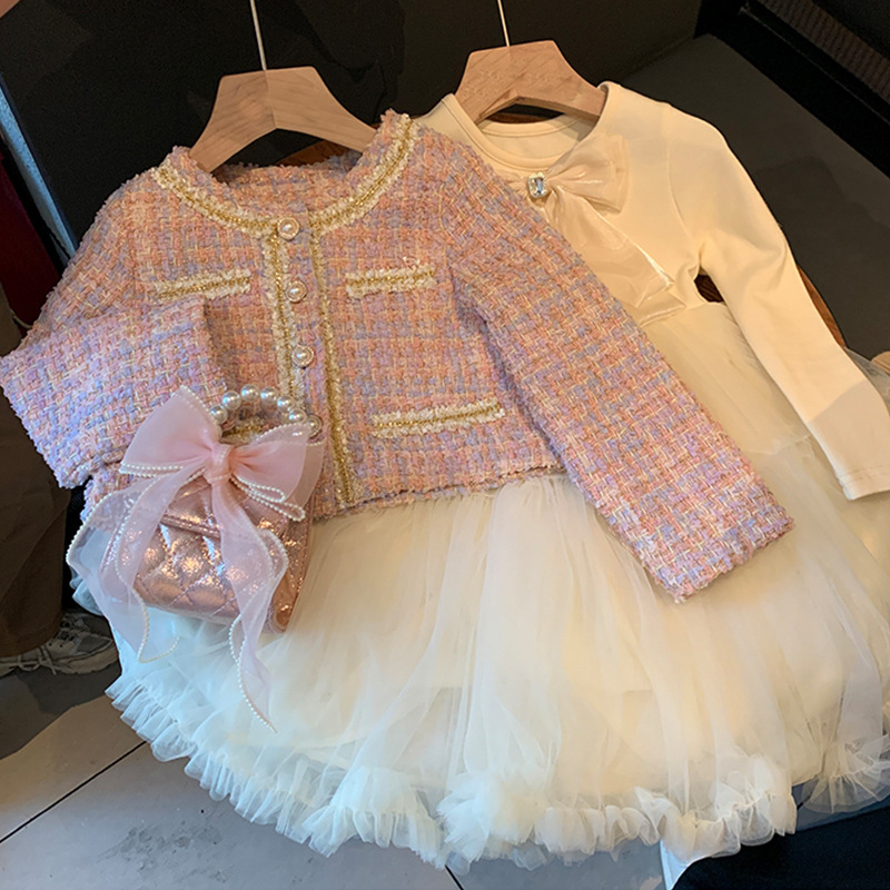 소녀의 샤넬 스타일 활 2024 가을 새로운 세트 스커트 아기 소녀의 투피스 메쉬 스타일라인 어린이 스커트스토어 가기