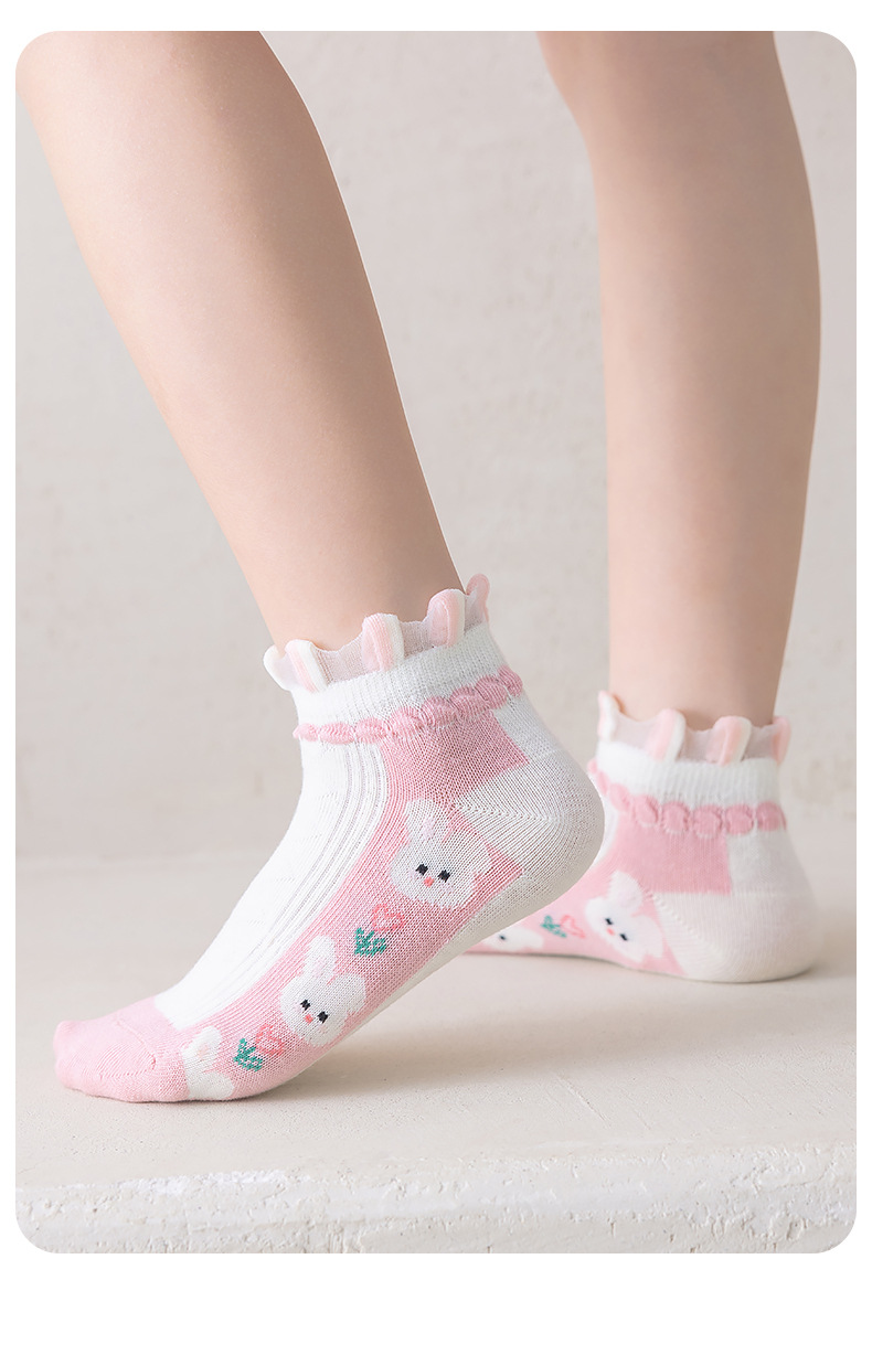 새 어린이 양말 빗질면 중간 길이의 양말 학생 레이스 얇은 봄 및 여름 큰 어린이 남녀 뼈없는 양말스토어 가기