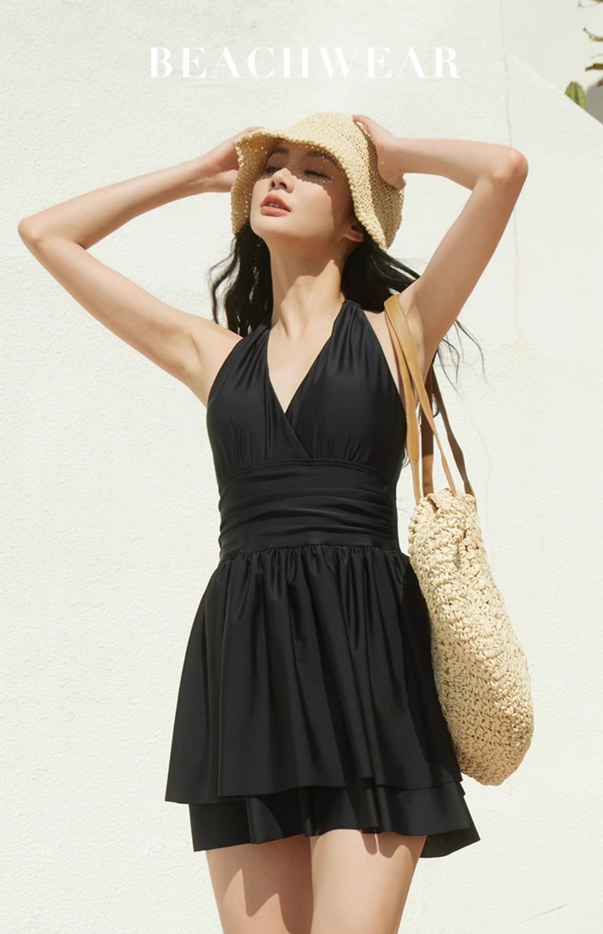 여성용 산치 원피스 수영복, 하이엔드 2025 신형 배 커버, 슬리밍, 온천 휴가 섹시 수영복스토어 가기