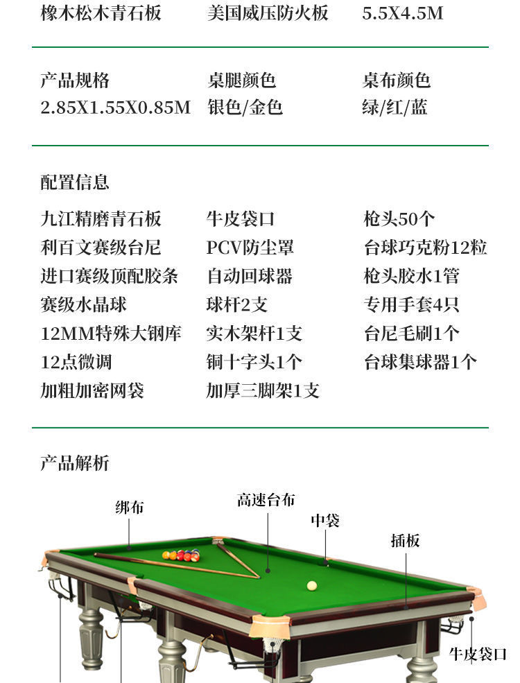 중국식 당구대 블랙 8 당구대 독조 상업용 표준 당구장 당구장 블랙 다이아몬드 마운틴