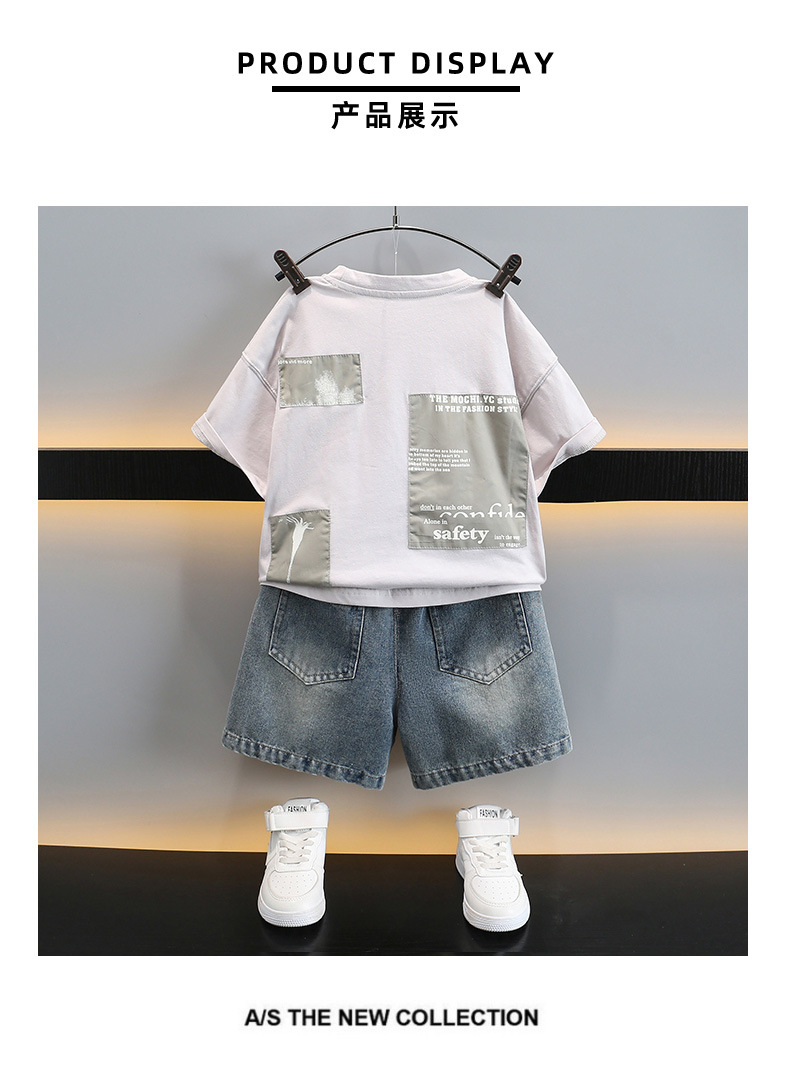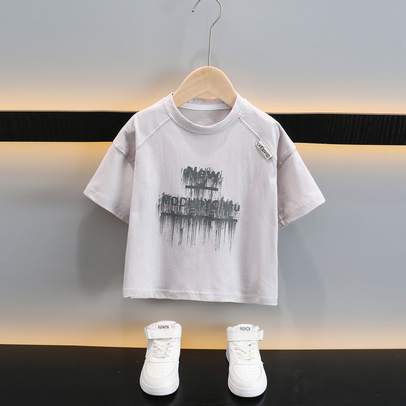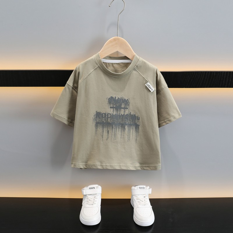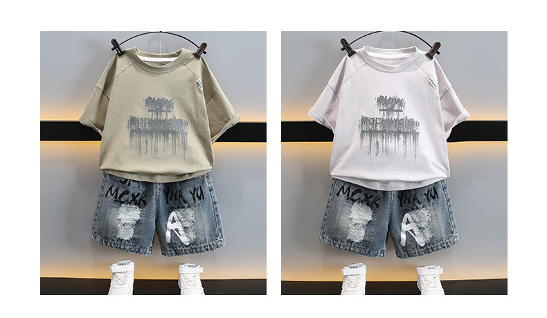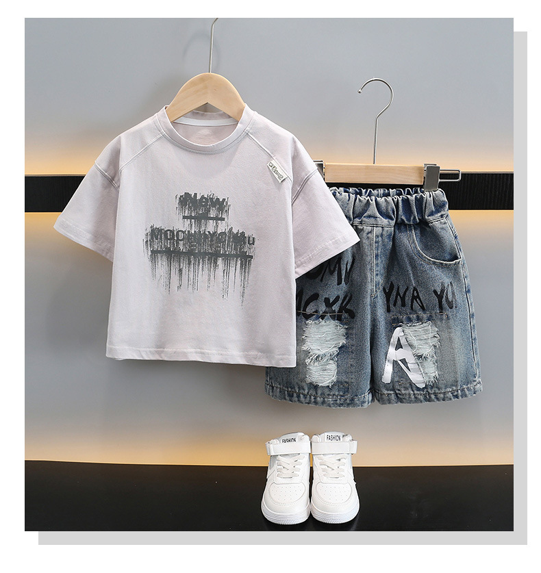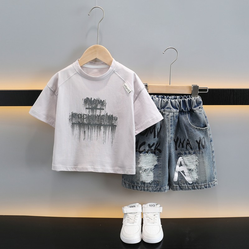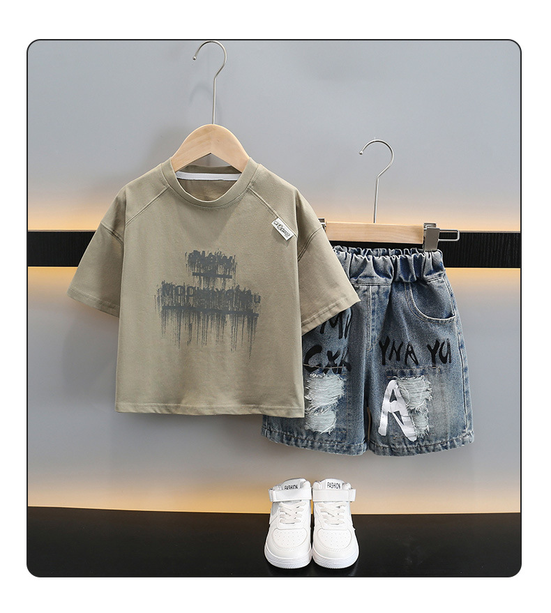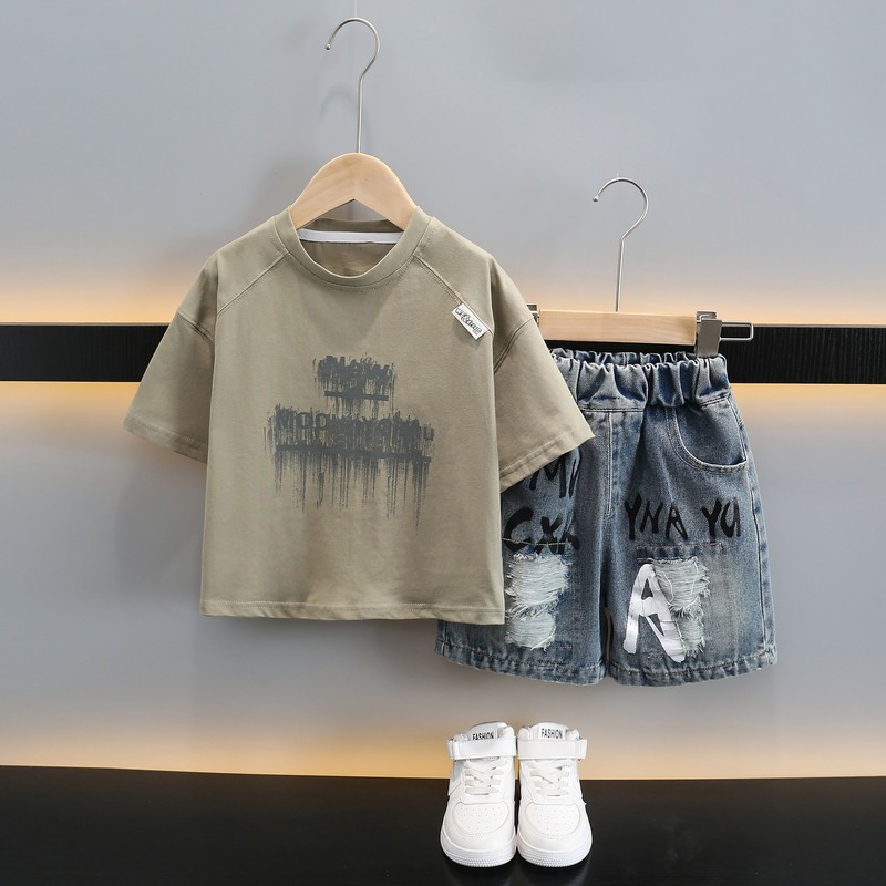 남자들의 여름 반팔 세트 2025 새로운 스타일라인 인쇄 어린이 얇은 옷 반바지 아기의 한국식 여름 패션스토어 가기