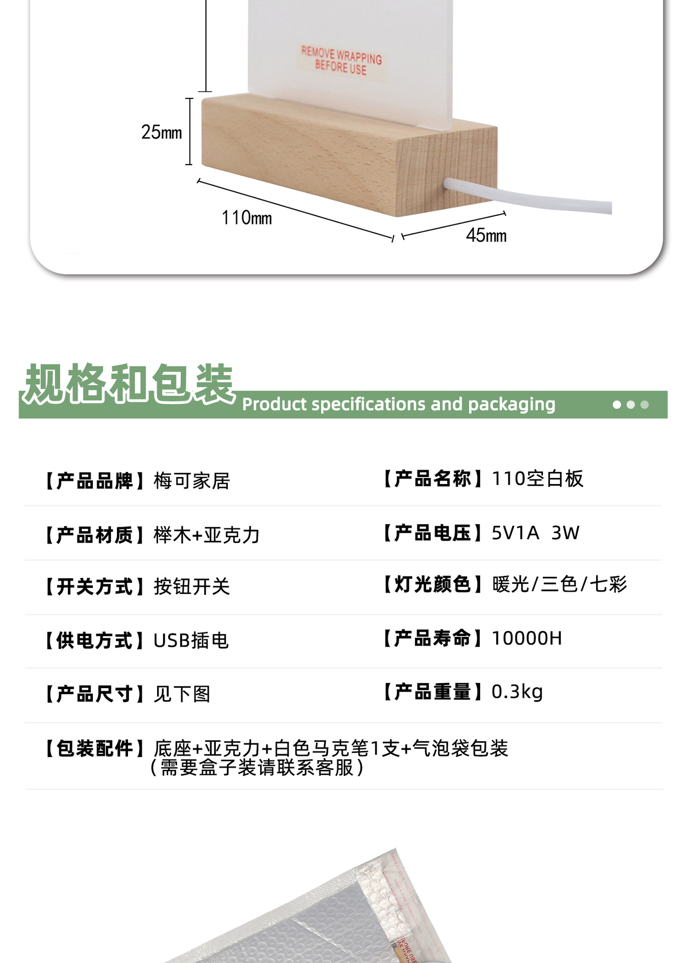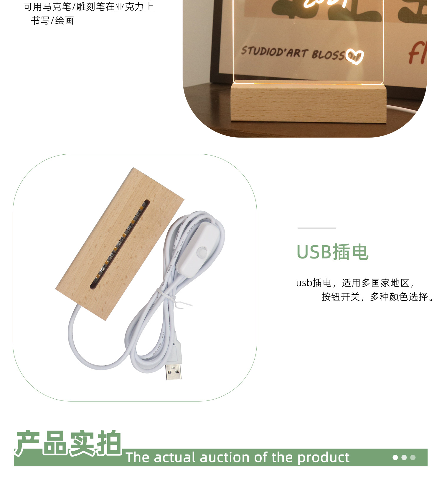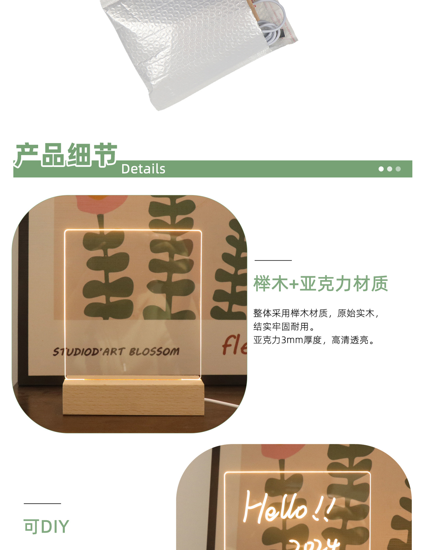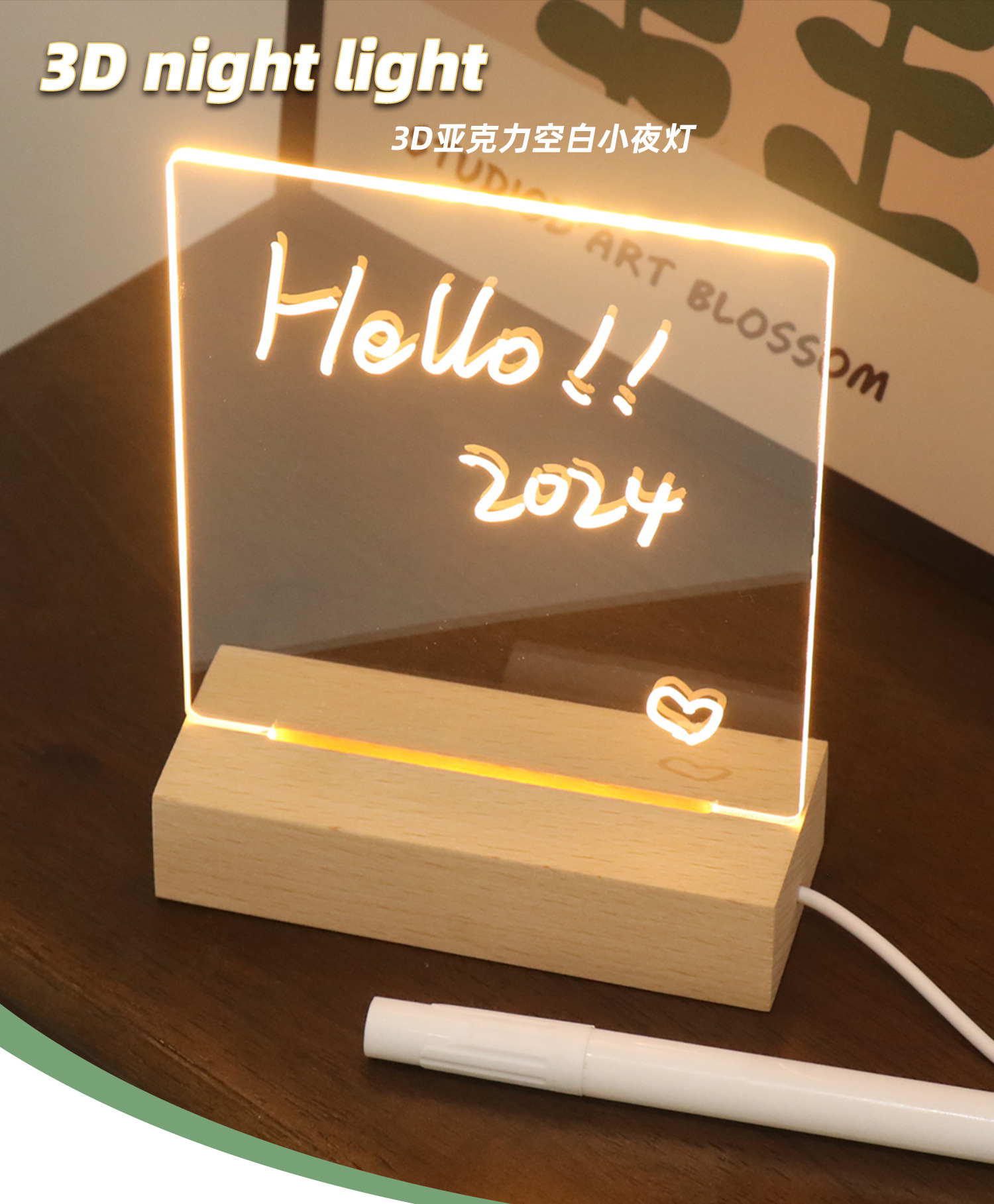 창조적 인 DIY 선물 쓰기 보드 야간 조명 지울 수있는 메시지 보드 국경 장식 아크릴 아크릴