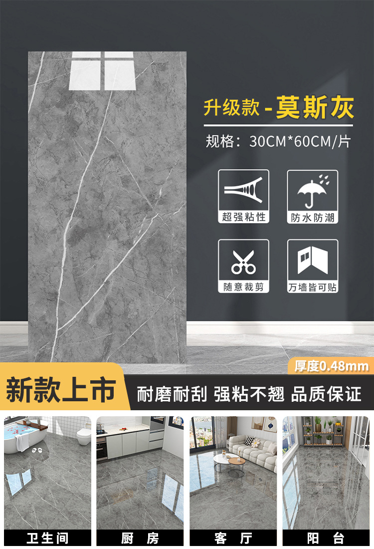 PVC 자체 접착 바닥 스티커 두꺼운 내마모성 방수 세라믹 타일 스티커 시멘트 바닥 스티커 홈 모조 세라믹 타일 바닥 가죽