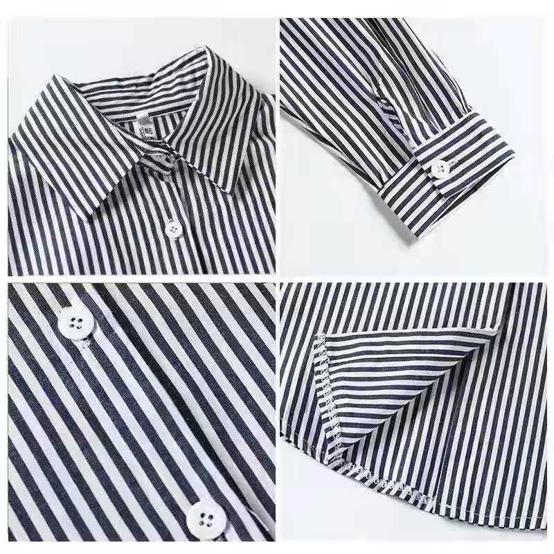 수직 스트라이프 스택 긴 소매 셔츠 여성의 봄과 가을 새로운 스타일 우아한 올 매치 레트로 홍콩 스타일 느슨한 한국 스타일 탑