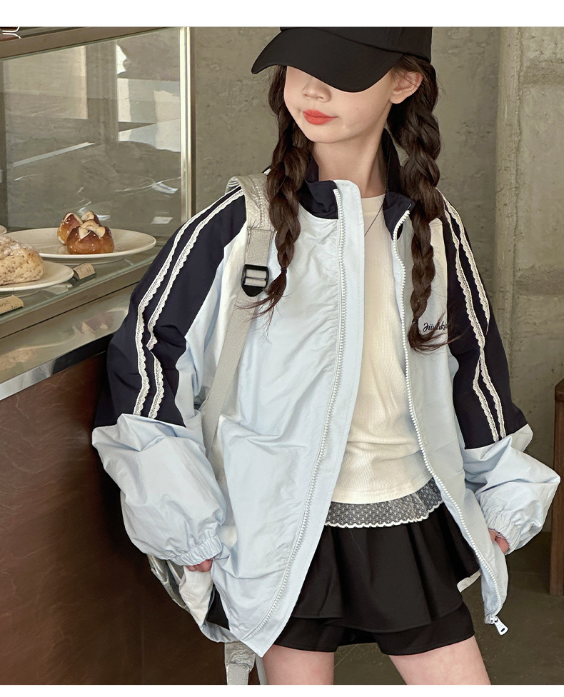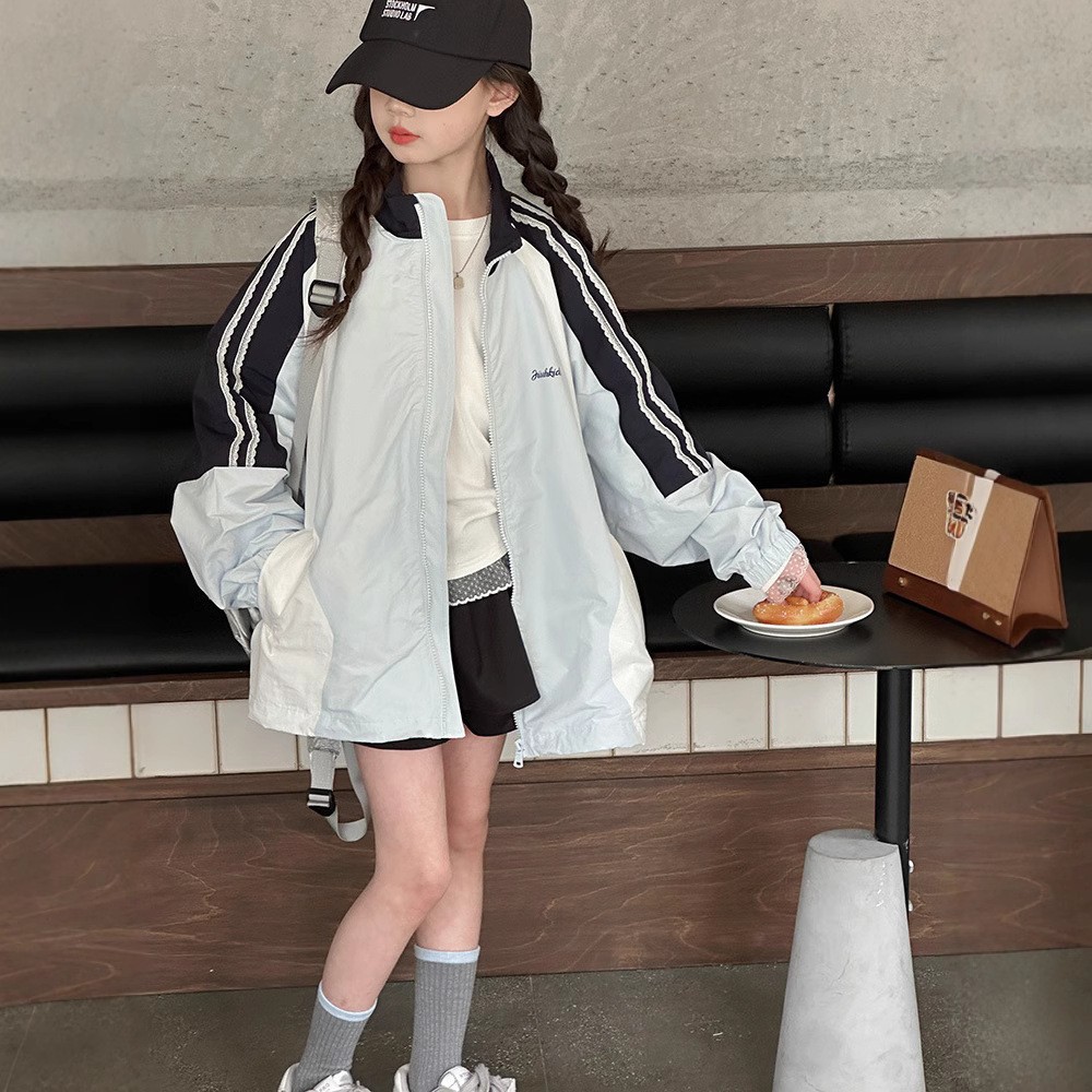 소녀 캐주얼 코트 봄과 가을 2025 새로운 한국 스타일 어린이 서양식 재킷 소녀의 느슨한 지퍼 셔츠 탑