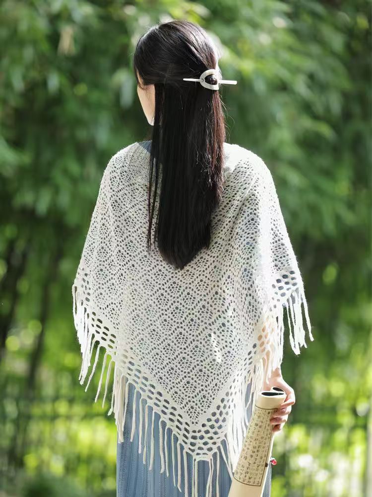 2025 새로운 봄과 여름 중공 삼각형 모든 경기 술 목도리 우아한 우아한 단색 경량 유행 간단한 스카프스토어 가기