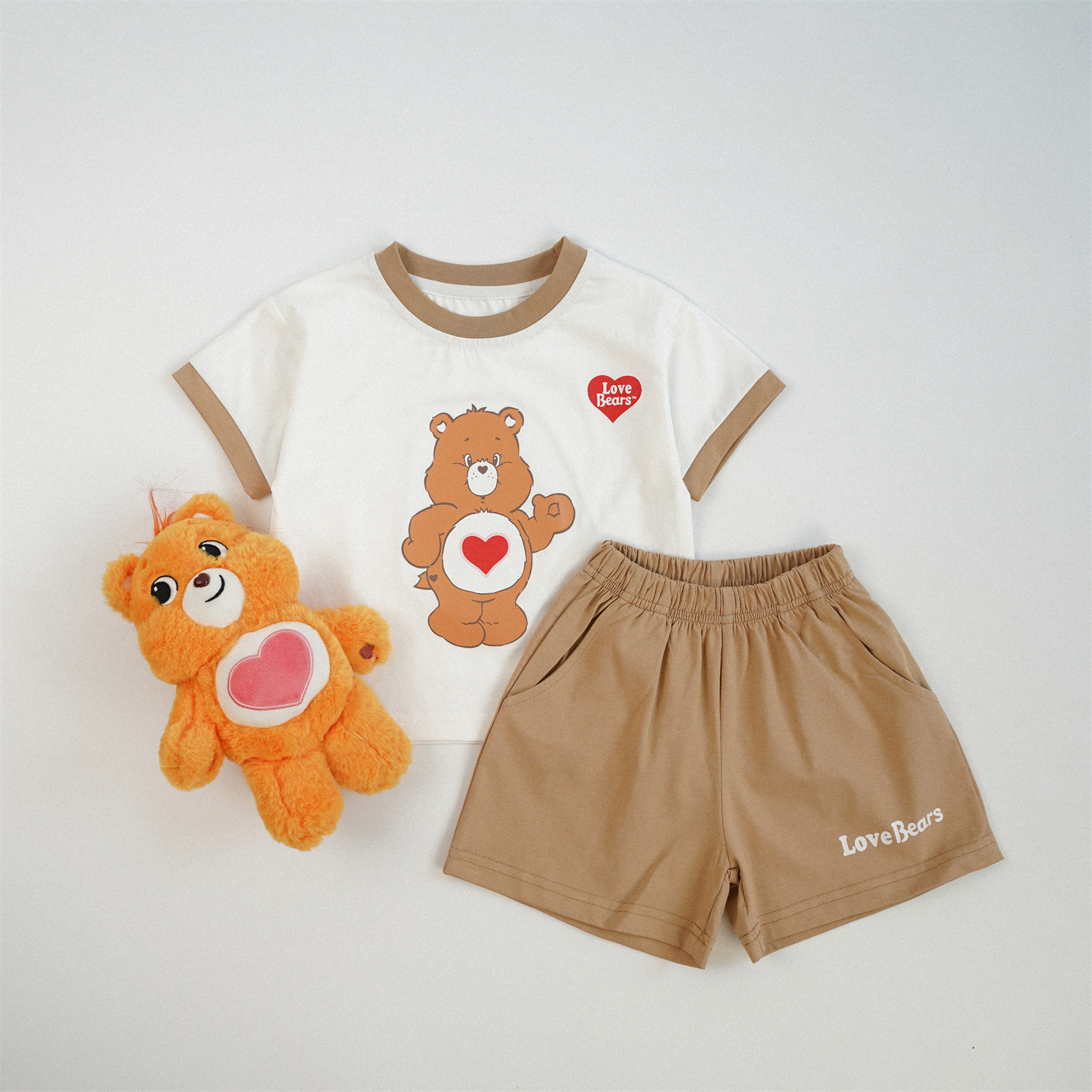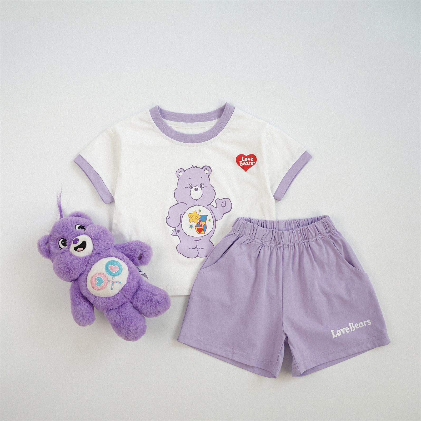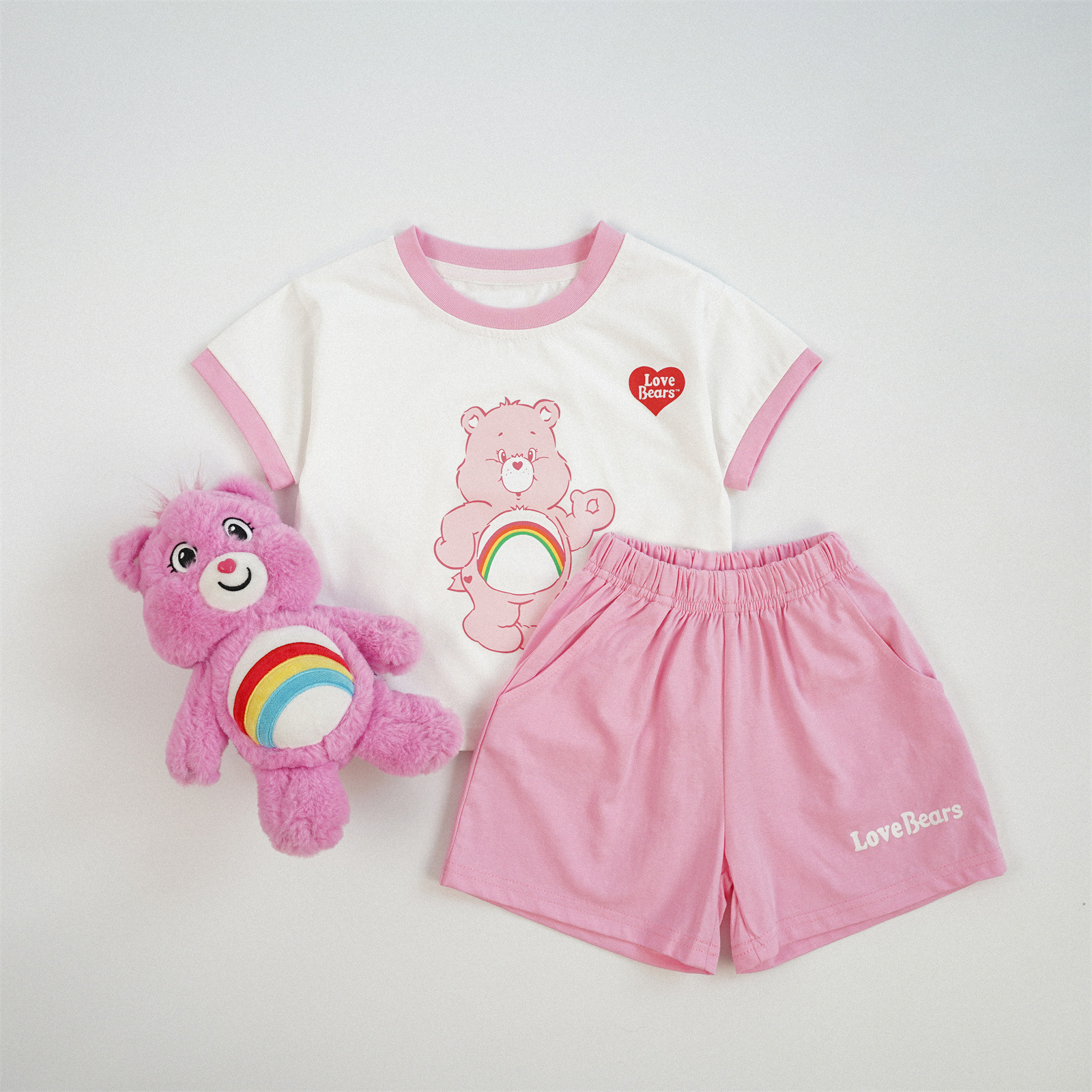 한국어 만화 어린이 반팔 양복 색상 차단 무지개 곰 반팔 양복 순수 코튼 클래스 아기 여름 반팔 양복스토어 가기