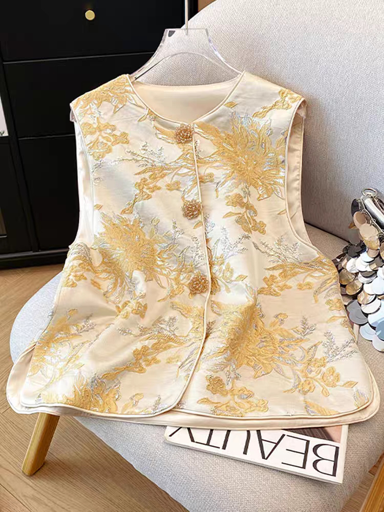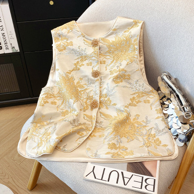 새로운 중국 스타일 국가 스타일 조끼 하이 엔드 우아한 청삼 웨이스트 코트 레트로 자카드 여성 외부 조끼