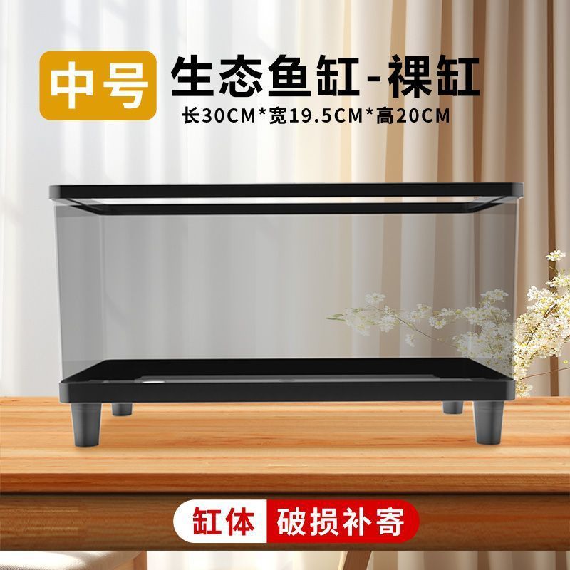 아크릴 투명한 물고기 탱크 플라스틱 금 거실 작은 가정 생태 탱크 바닥 배수 데스크탑 물 잔디 탱크스토어 가기