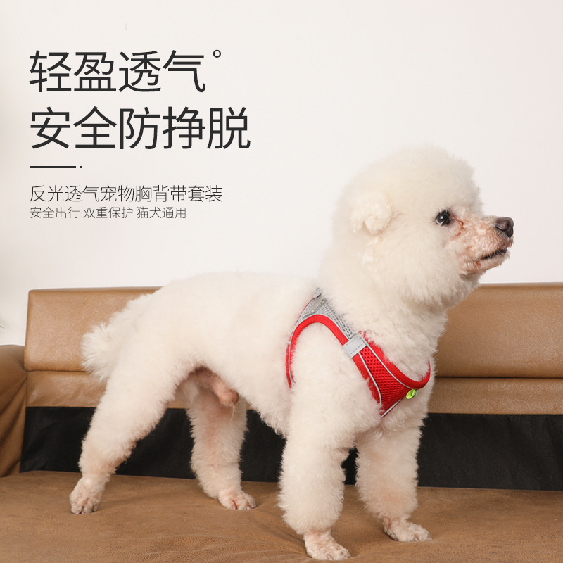 개 조끼 견인 밧줄 작은 개 고양이 걷는 개 견인 밧줄 테디 안티 브레이크 반사 가슴 스트랩
