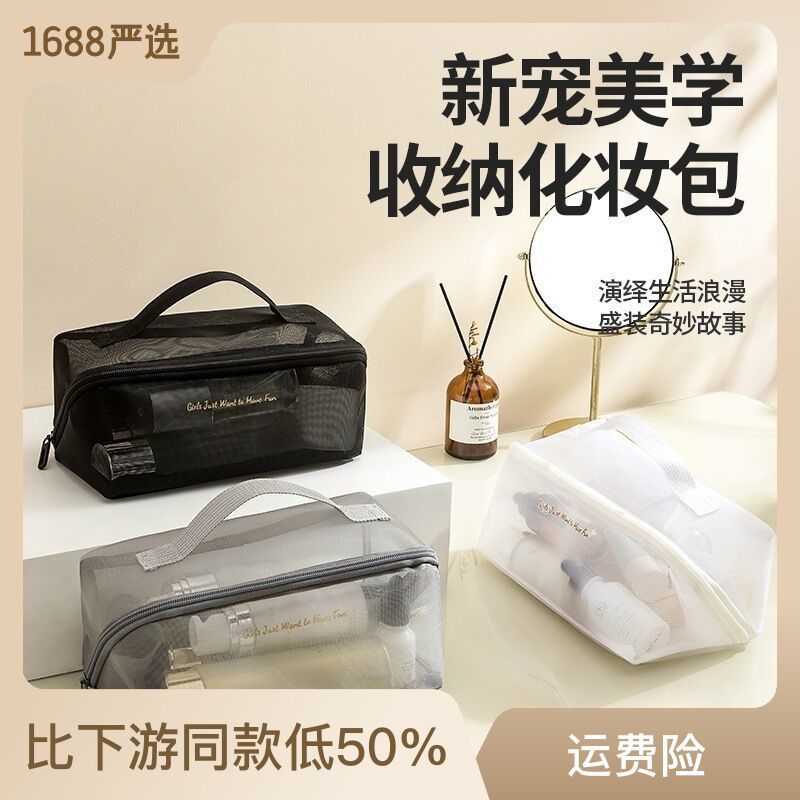 새로운 메쉬 베개 화장품 가방 휴대용 여행 세면 용품 가방 여성 메쉬 보관 가방 대용량 메쉬 보관 가방스토어 가기