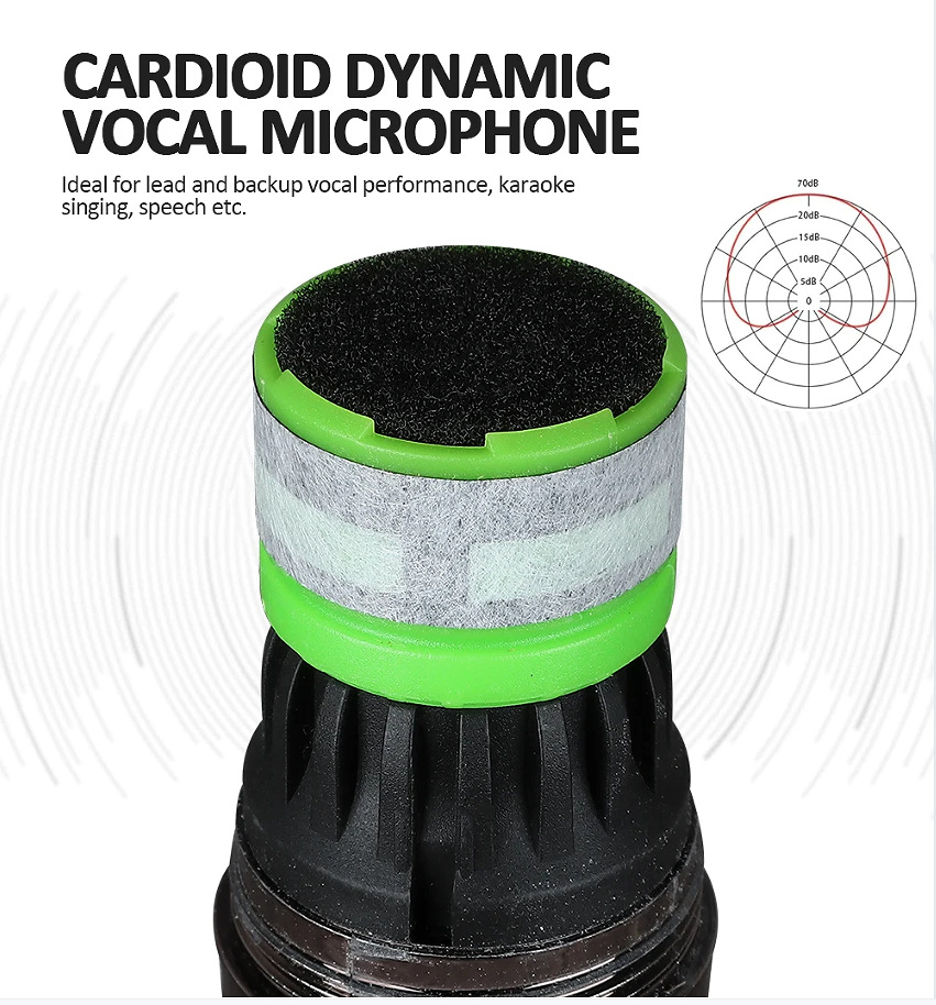 【轻巧坚固】:动圈心形话筒设计坚固,重量极轻,使用寿命长。50-18KHz的宽频响应,在反馈前实现高增益,使这款麦克风成为现场人声应用和录音放大乐器的理想选择。
