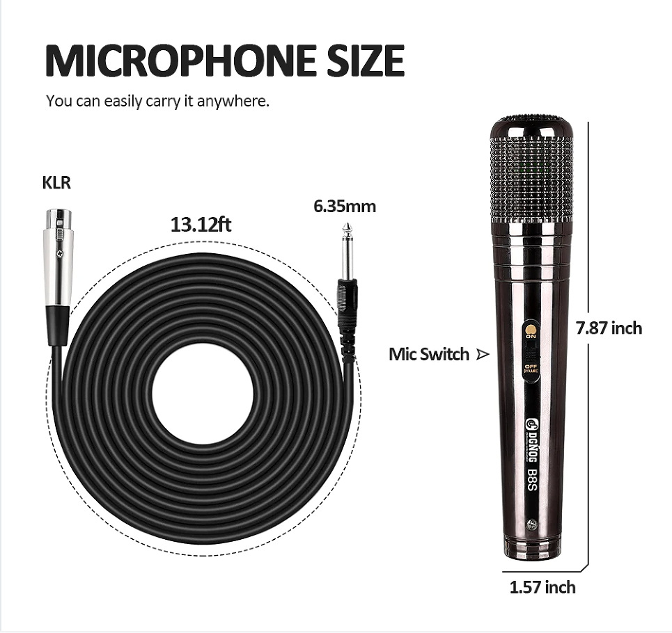 【包括电缆】:手持式麦克风配有约13英尺(4米)的电线,可以进行大范围的移动。不再因电线长度有限而分心。DGNOG麦克风非常适合您的卧室、专业工作室和舞台声乐表演。