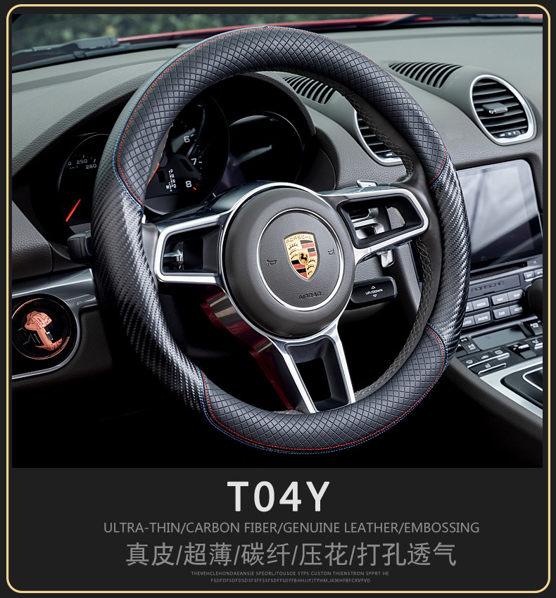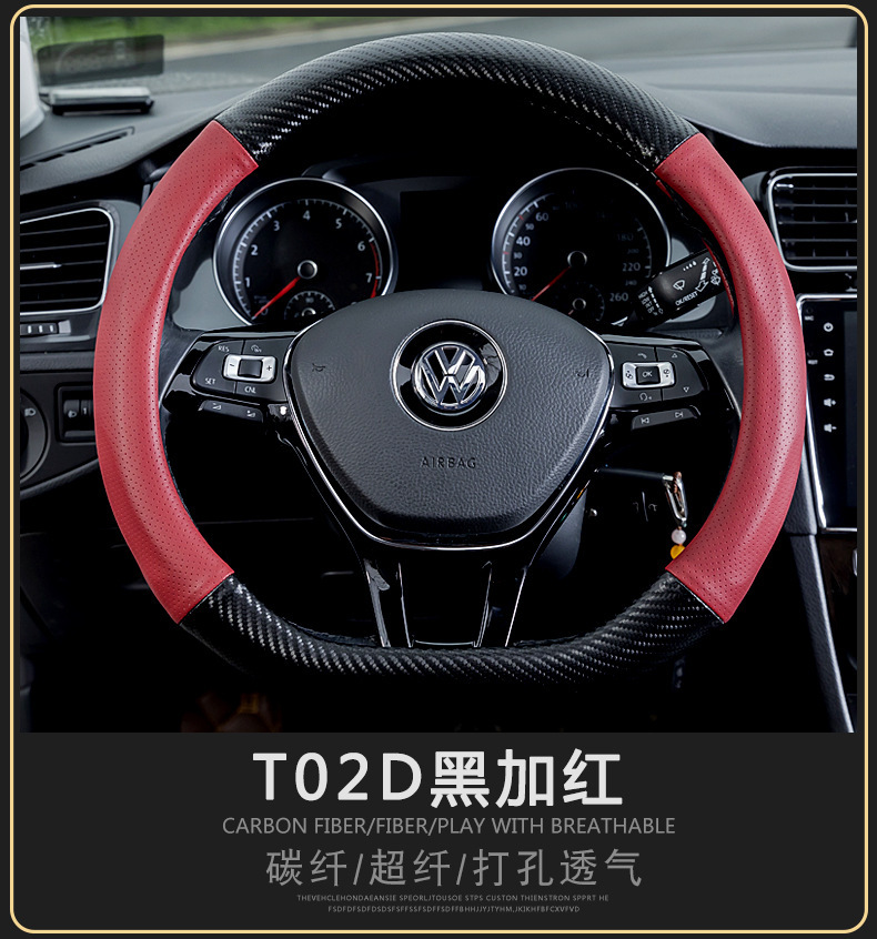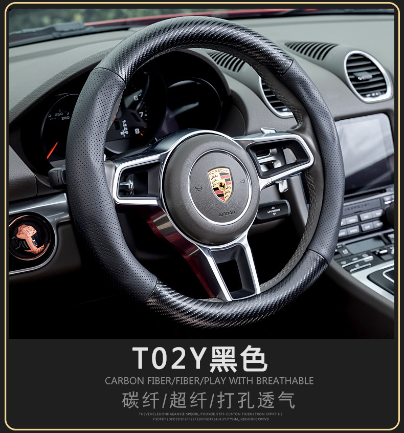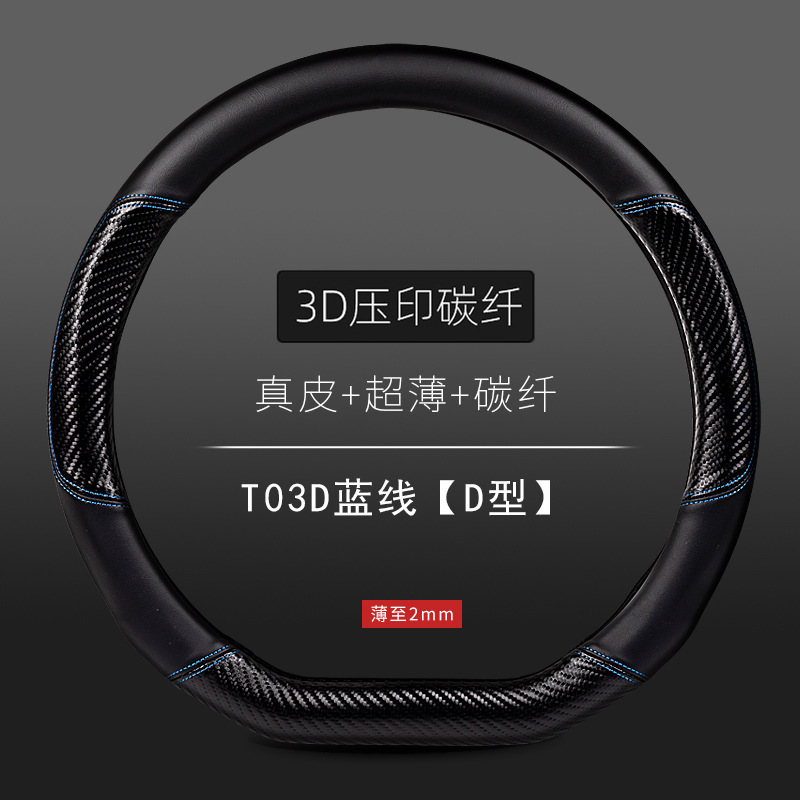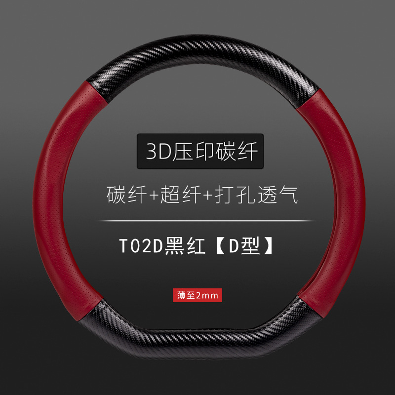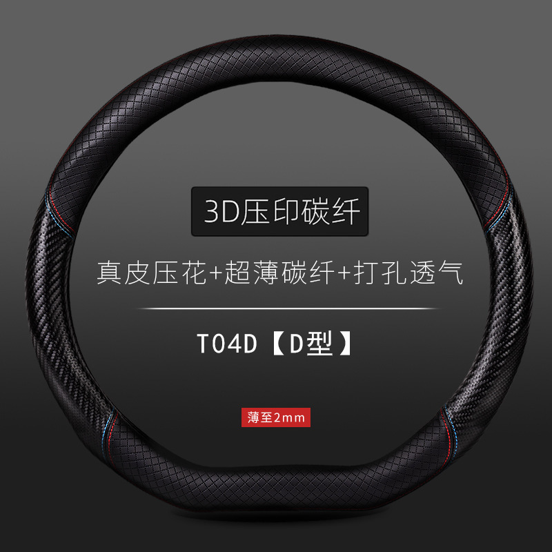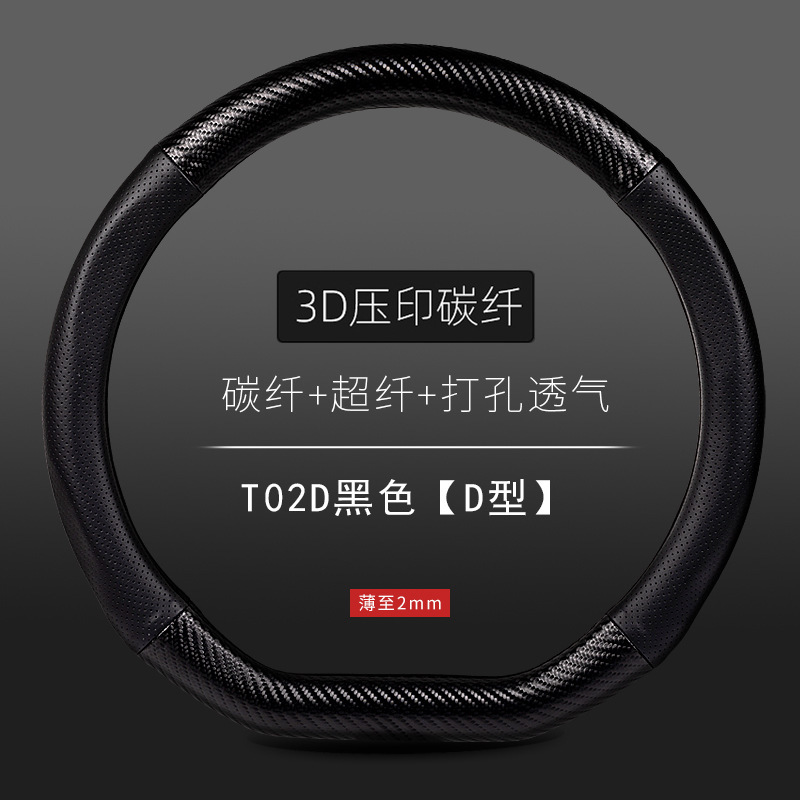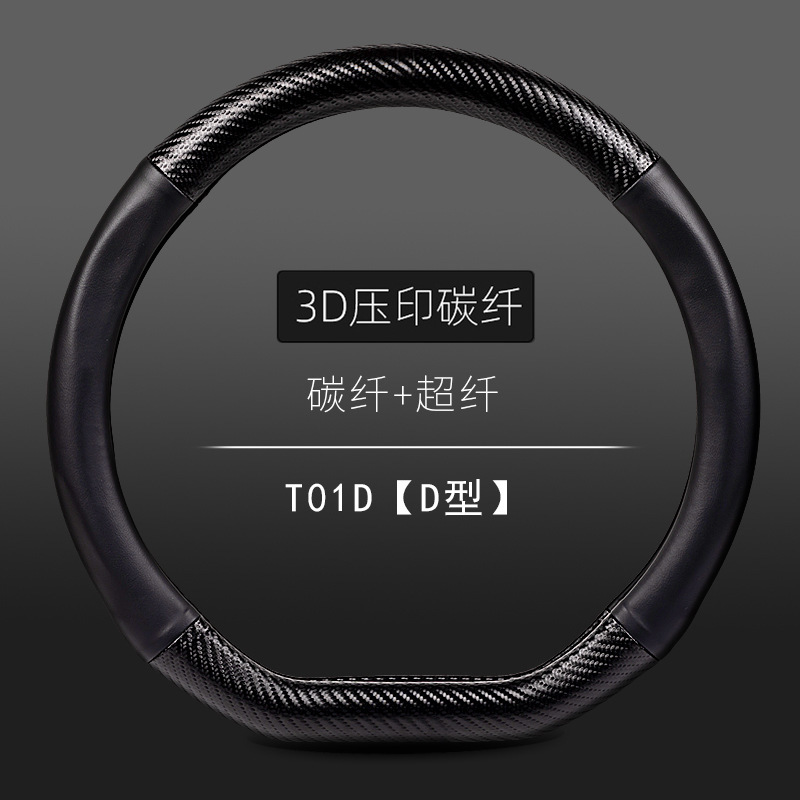 자동차 스티어링 휠 커버 남성용 탄소 섬유 핸들 커버 D 형 미끄럼 방지 통기성 4 시즌 일반 수정 용품