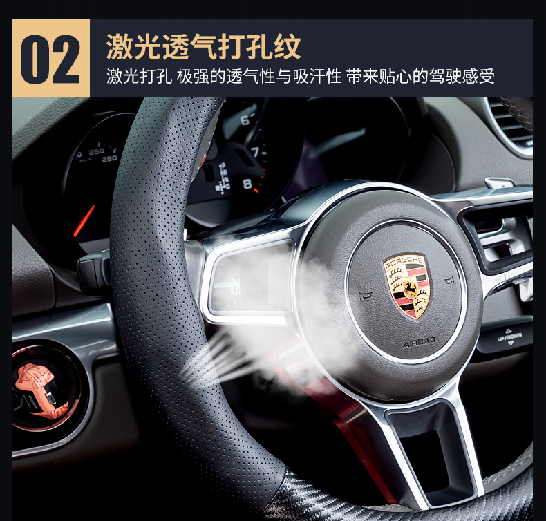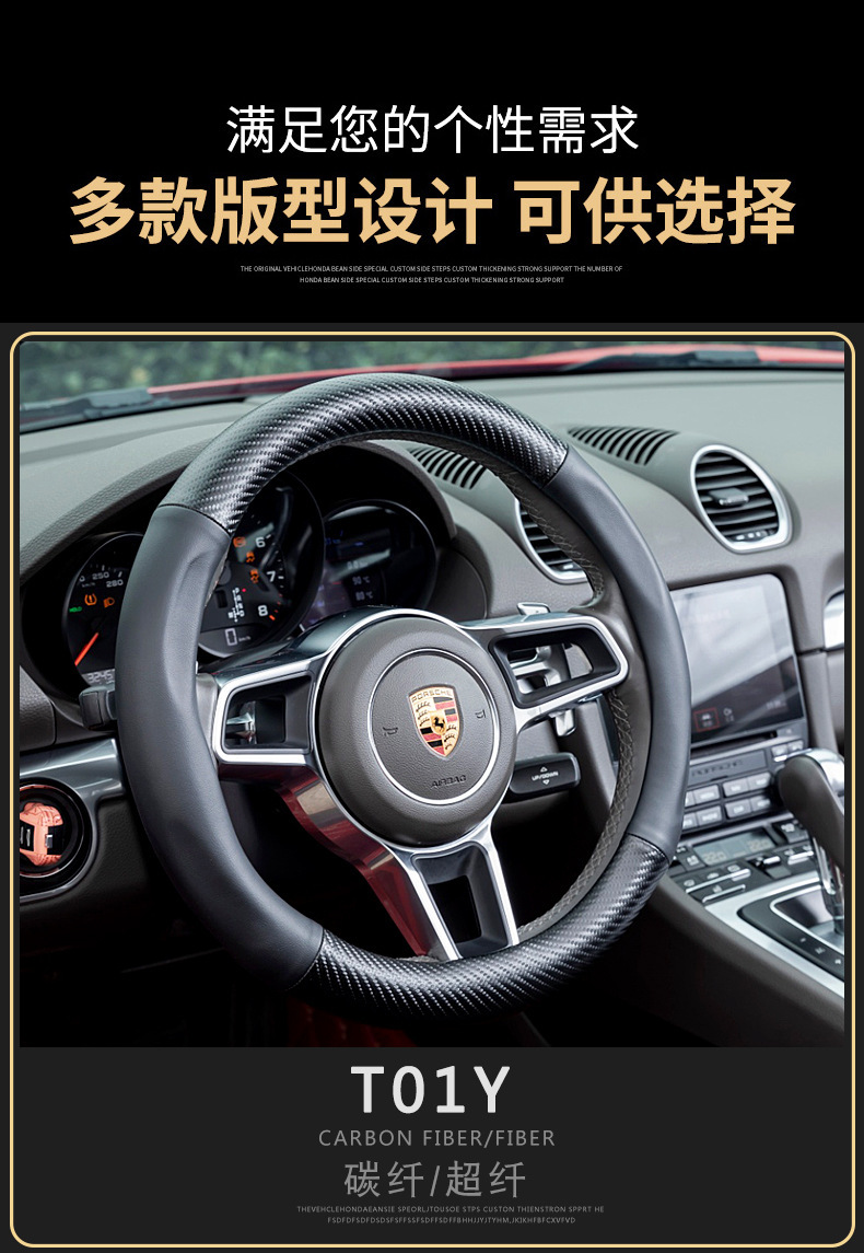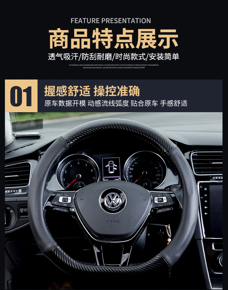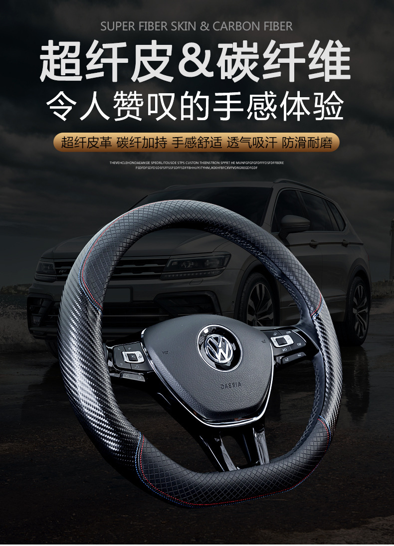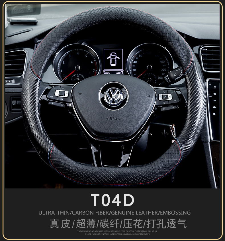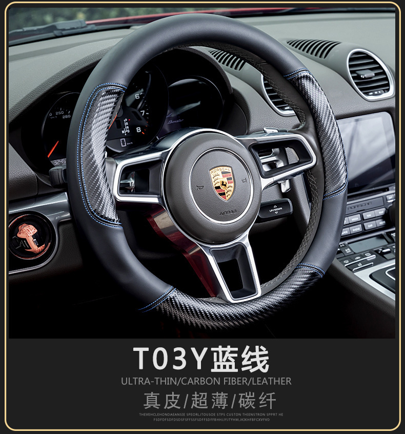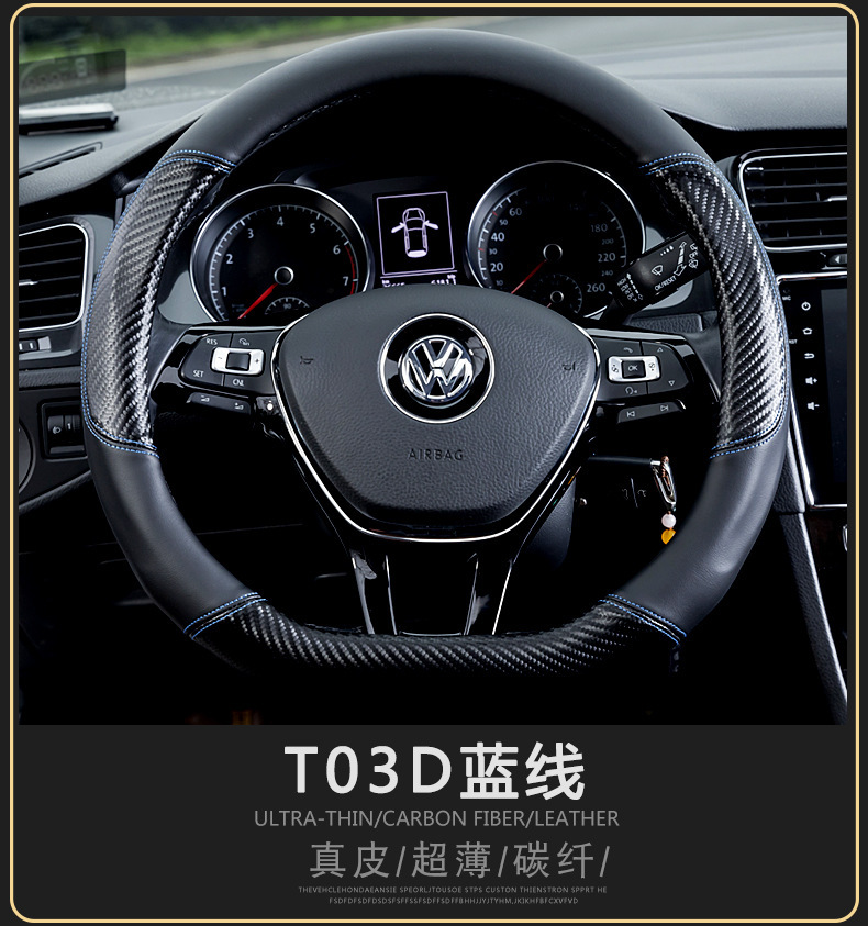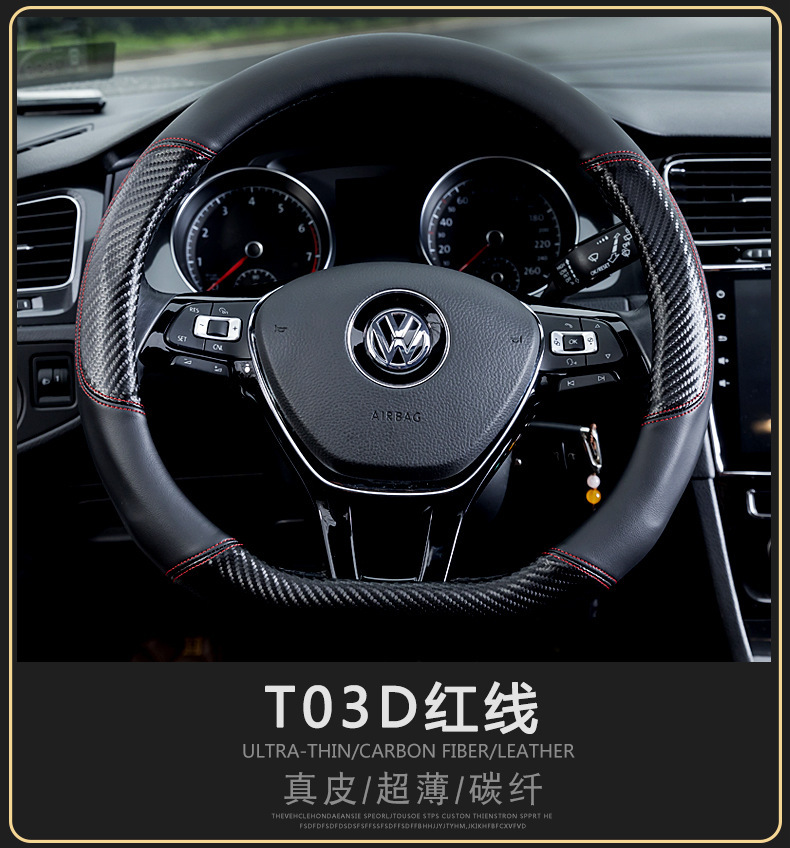 자동차 스티어링 휠 커버 남성용 탄소 섬유 핸들 커버 D 형 미끄럼 방지 통기성 4 시즌 일반 수정 용품