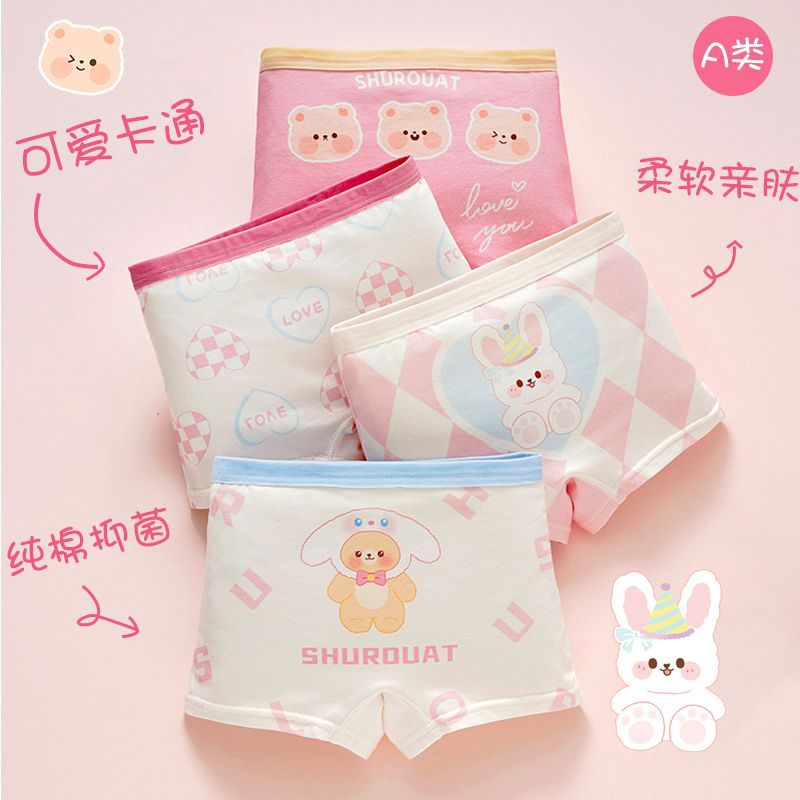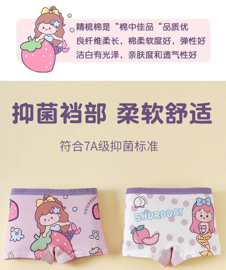 [무료배송] 여아용 사각팬티, 엉덩이를 조이지 않는 여름용 이중층 항균 팬티스토어 가기