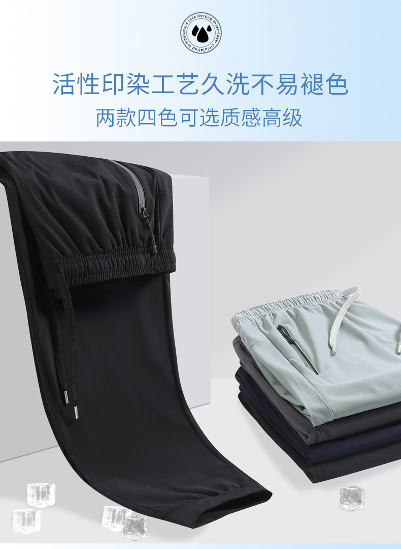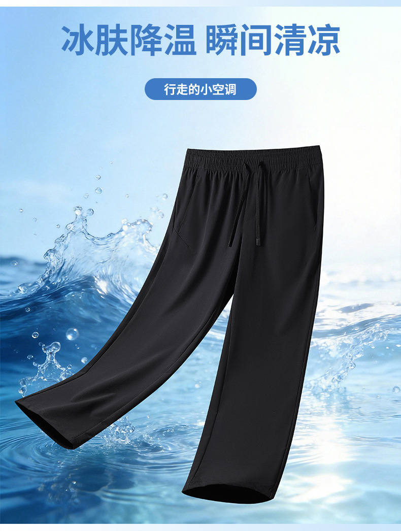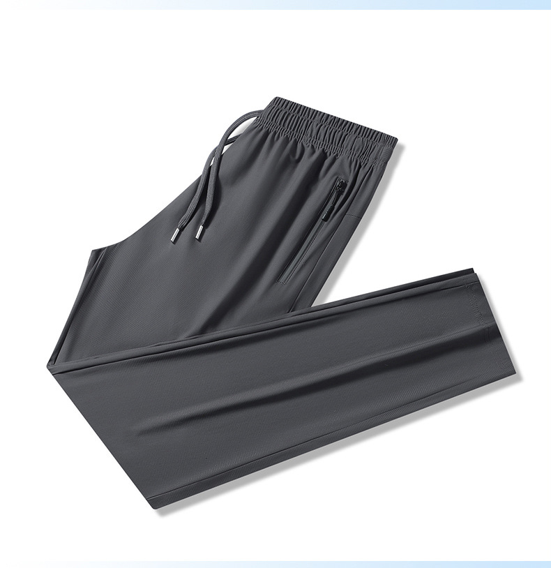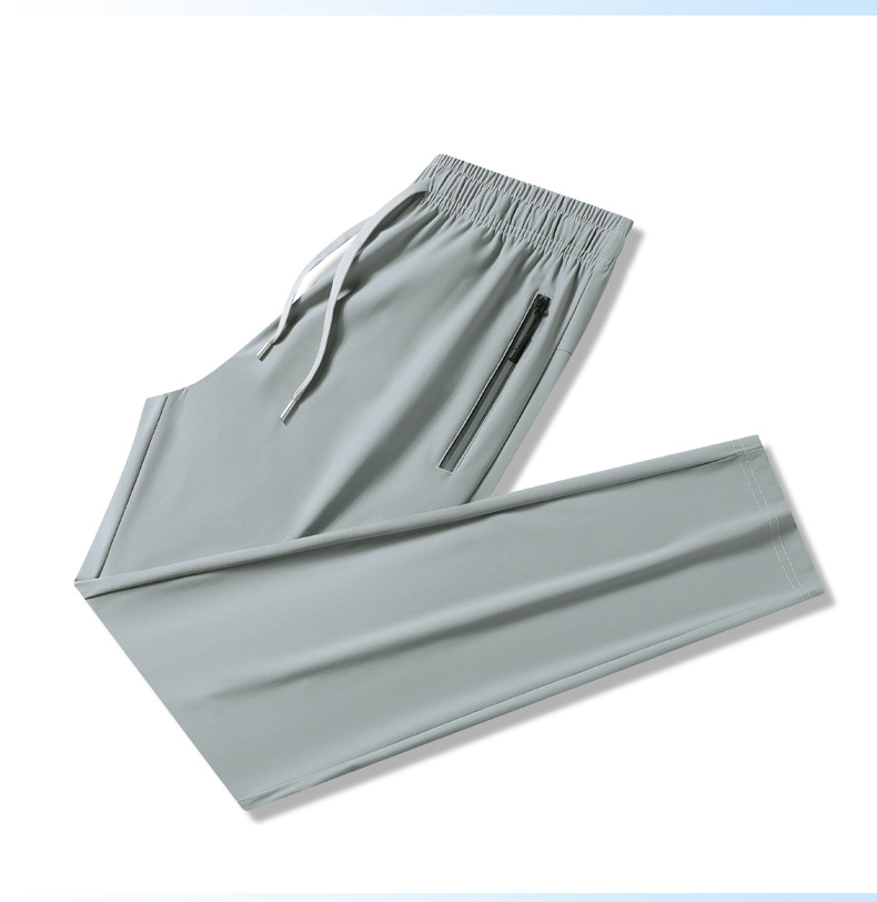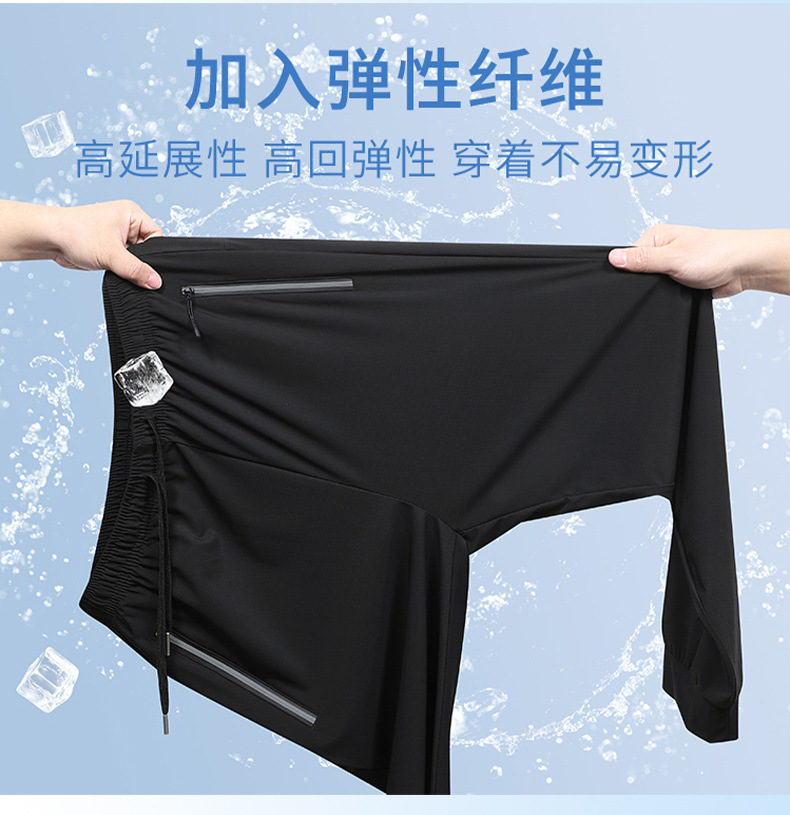 남성용 여름 아이스 실크 바지 5 개 방지 보이지 않는 체크 무늬 얇은 아이스 실크 에어컨 바지 남성용 와이드 레그 드랩 빠른 건조 캐주얼 바지스토어 가기