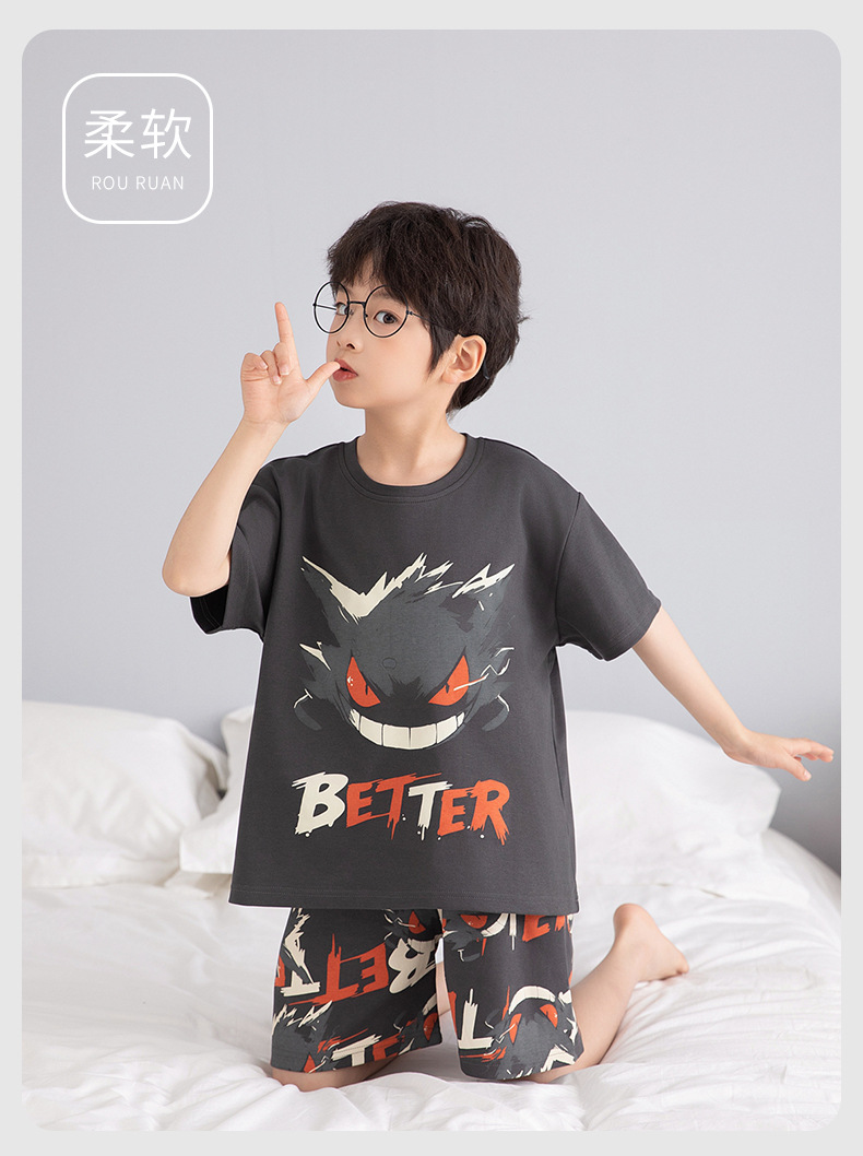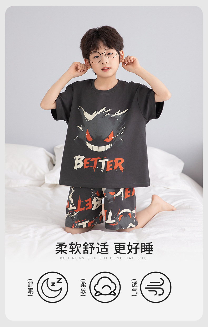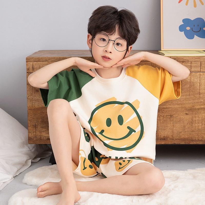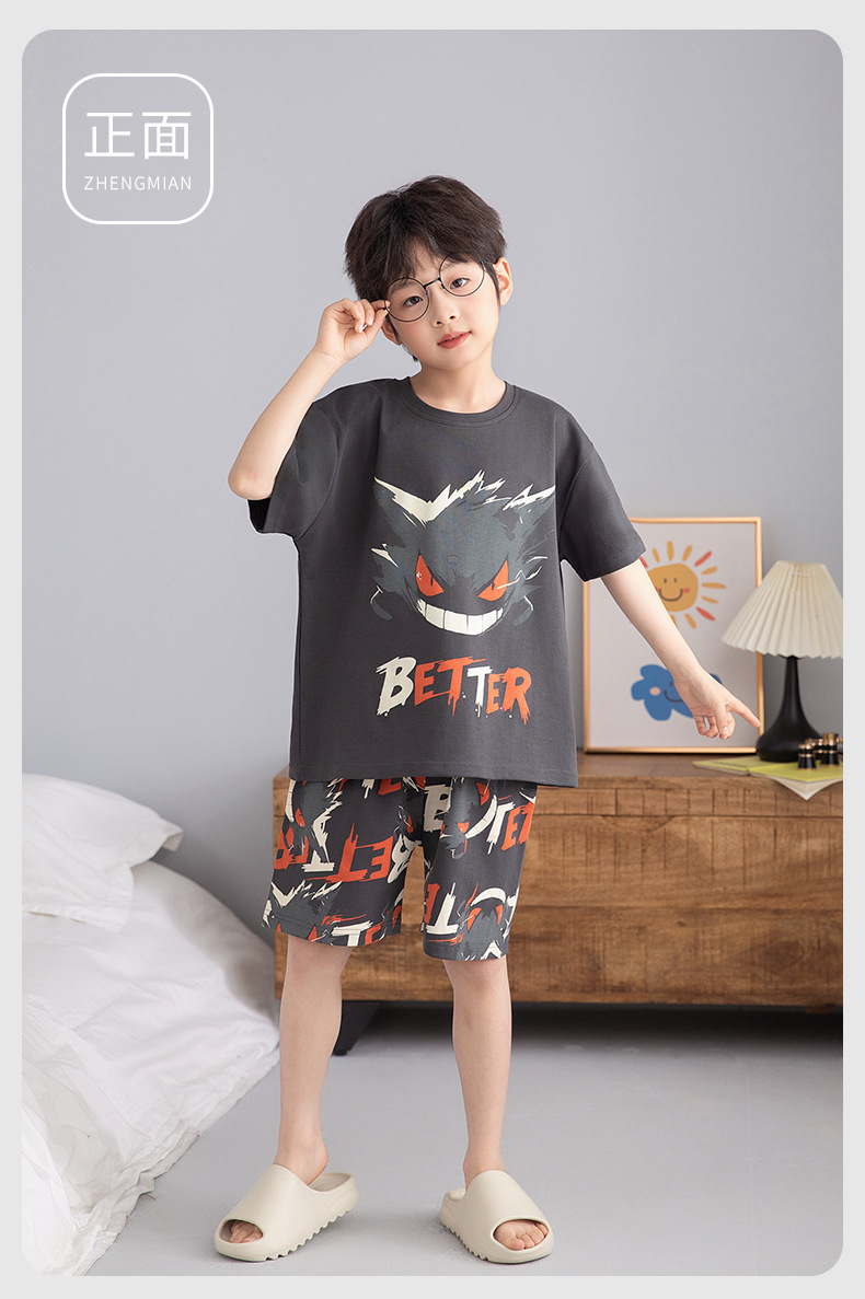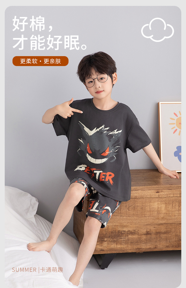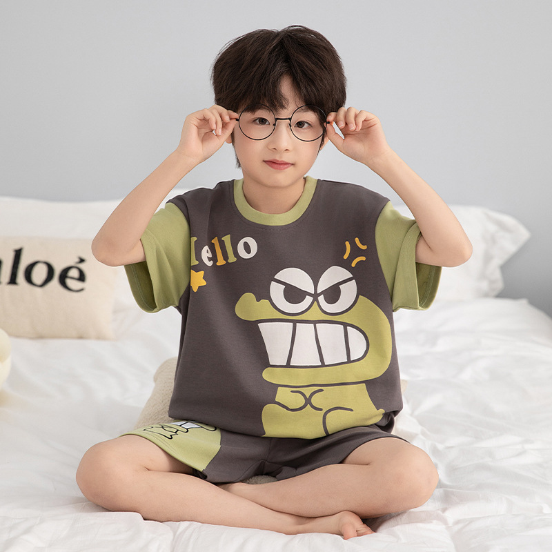 남학생 잠옷 여름 순면 짧은 소매 반바지 십대 소년 아기 학생 캐주얼 에어컨 홈 의류 세트스토어 가기