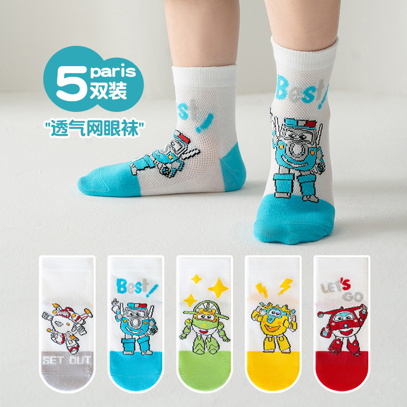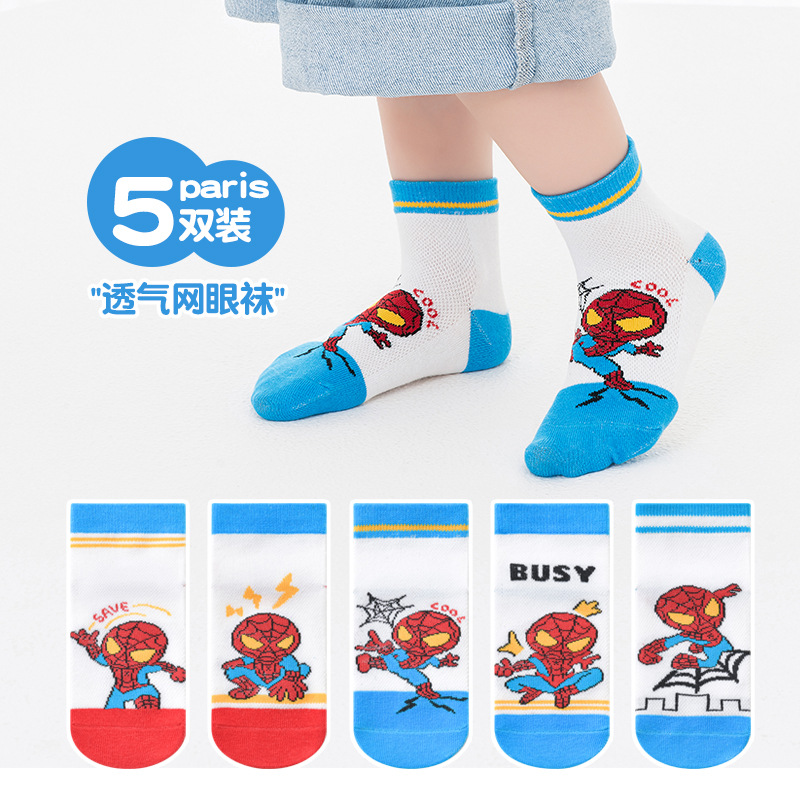 어린이 양말 봄과 여름 만화 변형 영웅 메쉬 코튼 양말 땀 흡수성 통기성 소년 조수 시원한 튜브 양말 도매스토어 가기