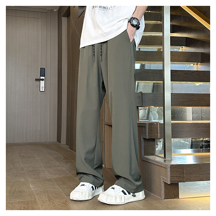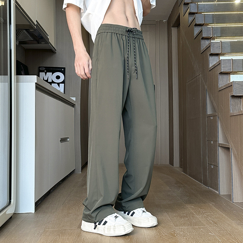 여름 편안한 아이스 실크 바지 유니섹스 쿨 통기성 빠른 건조 플러스 사이즈 스포츠 바지 얇은 끈 캐주얼 바지