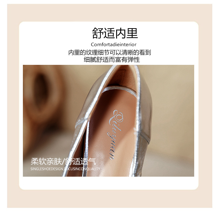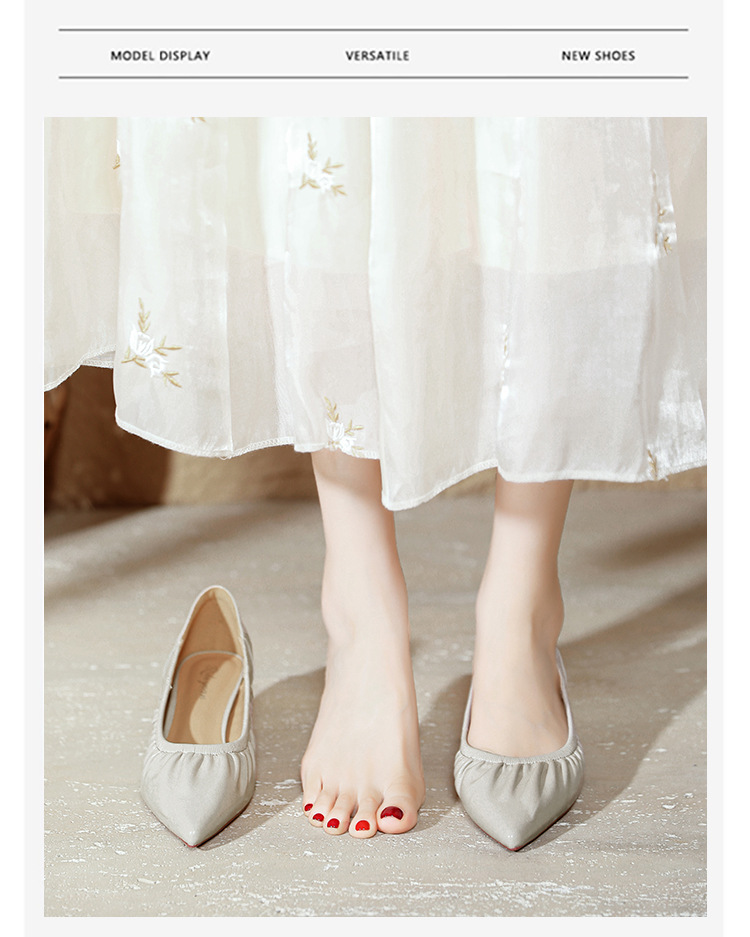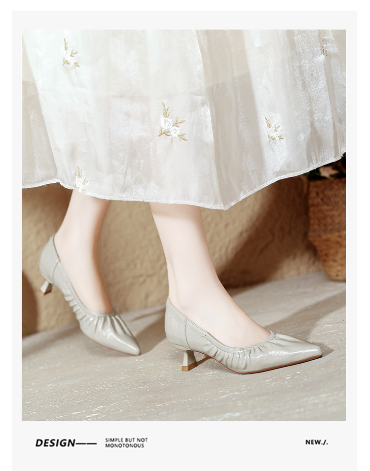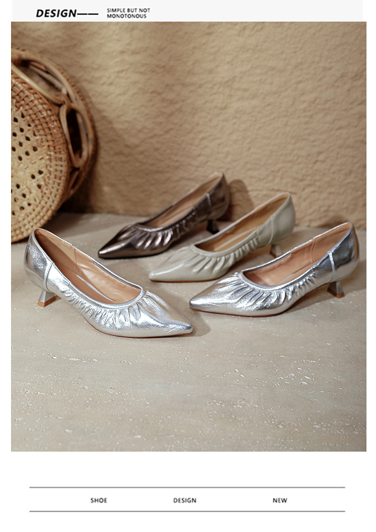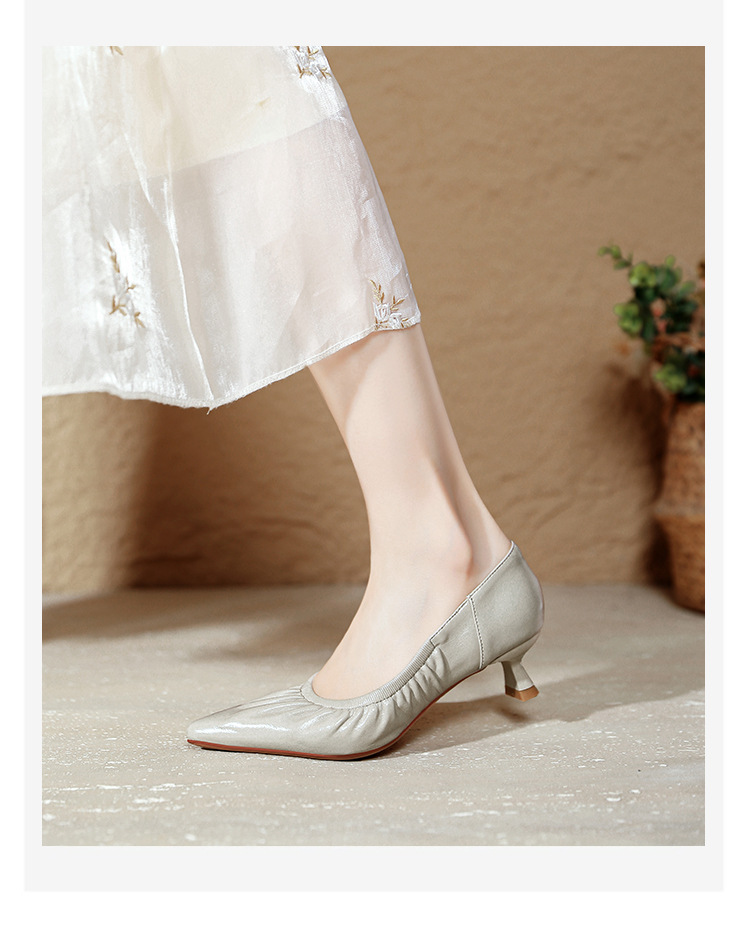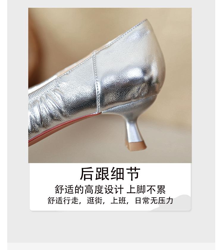 스틸레토 힐 실버 신발 부드러운 가죽 주름 통근 작업 신발 뾰족한 하이힐 2025 새 봄과 가을 여성 신발 미들스토어 가기