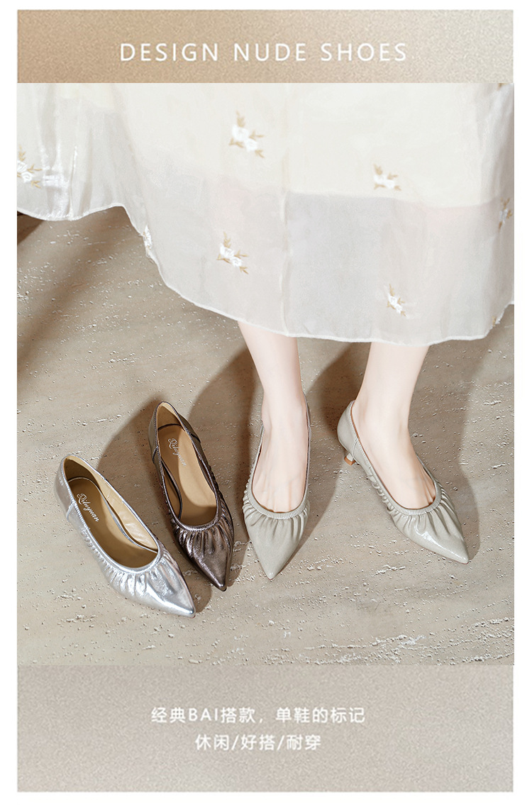 스틸레토 힐 실버 신발 부드러운 가죽 주름 통근 작업 신발 뾰족한 하이힐 2025 새 봄과 가을 여성 신발 미들