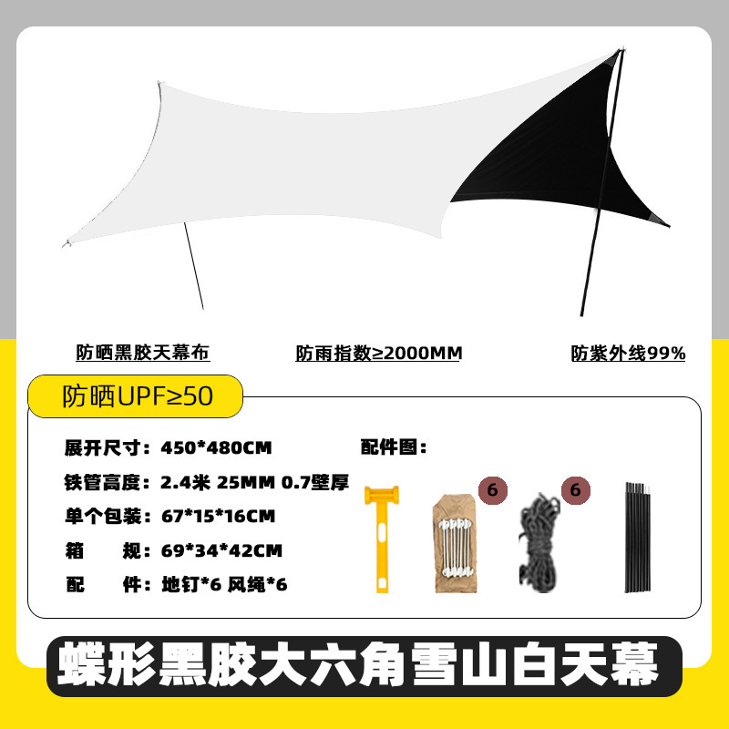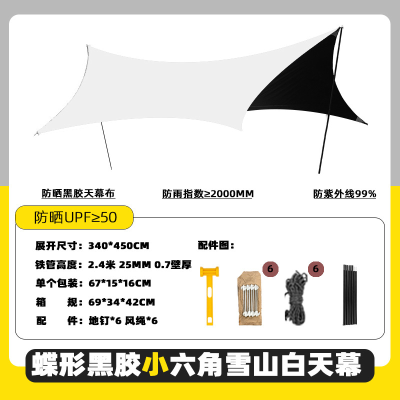 나비 모양의 풀 밴드 선 스크린 블랙 접착제 텐트 방수 경량 실버 코팅 스카이 커튼 방비 그늘 천 야외 캠핑스토어 가기