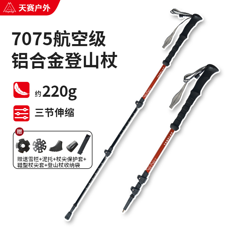 텐플레이 휴대용 야외 미끄럼 방지 등산 장비 하이킹 스틱 3 섹션 망원경 7075 알루미늄 합금 등산 스틱
