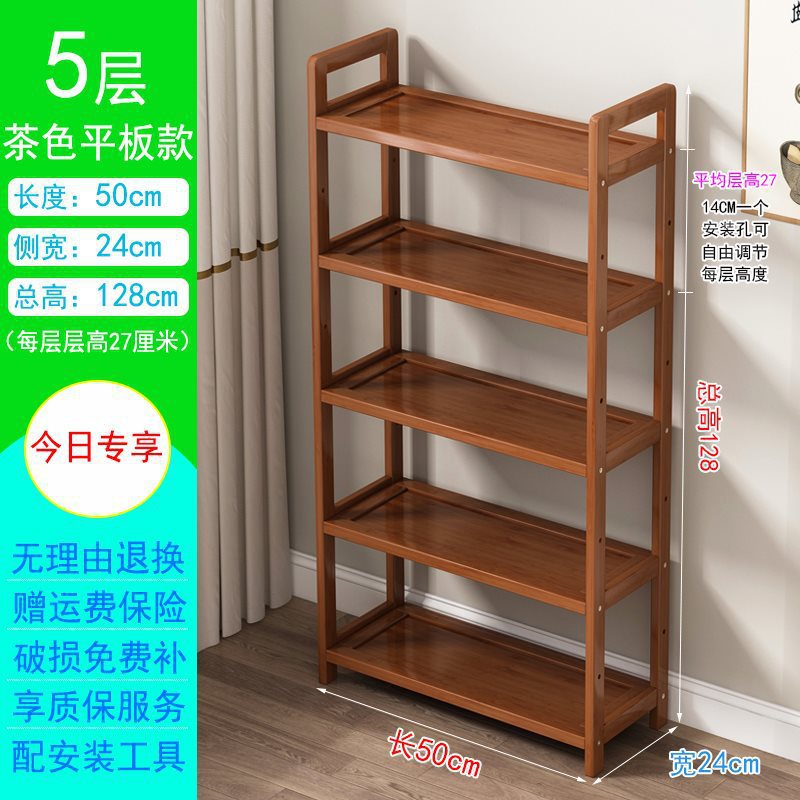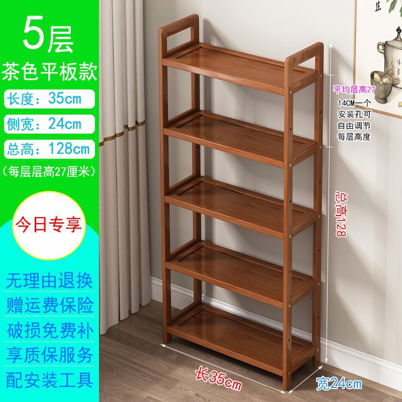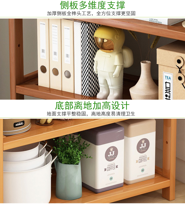 대나무 책장 간단한 다층 거실 저장 캐비닛 주방 저장 랙 어린이와 학생을위한 단단한 나무 작은 저장 랙