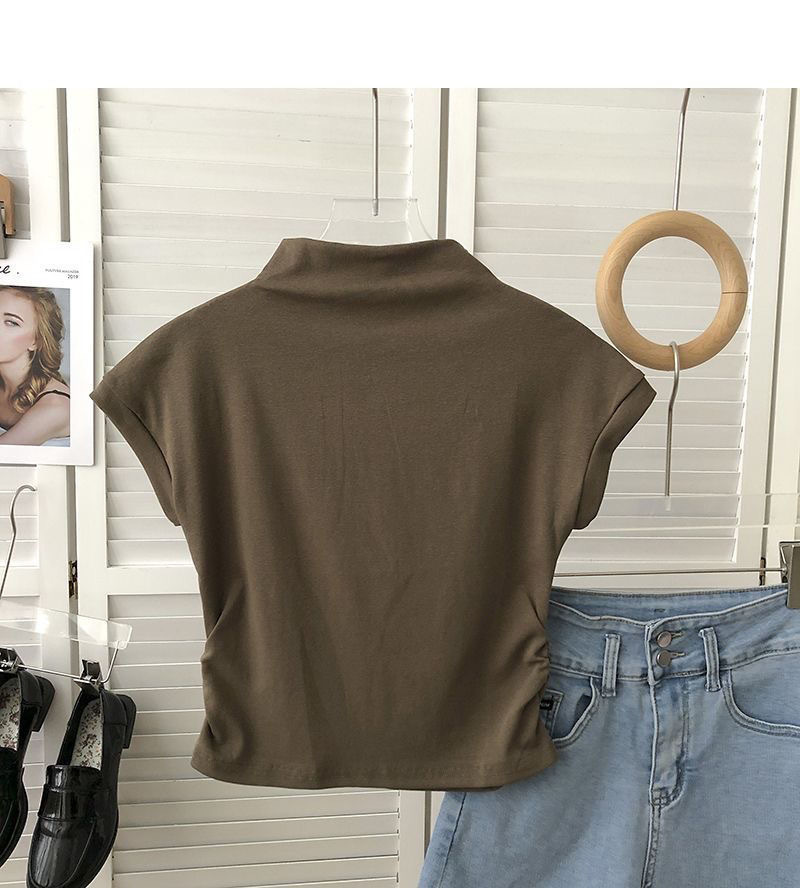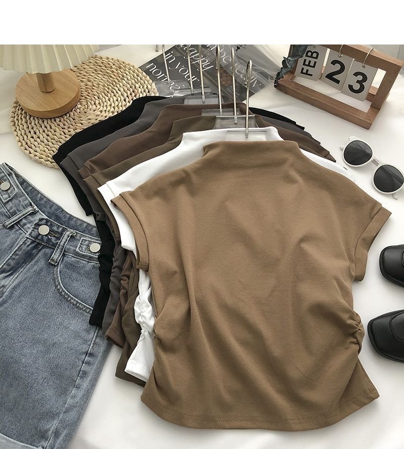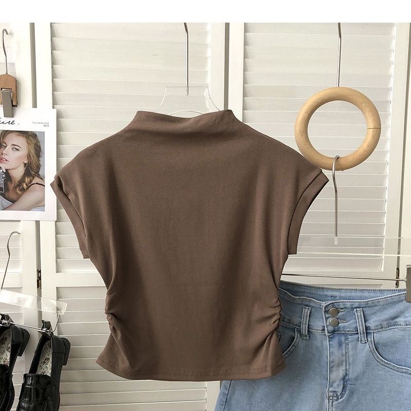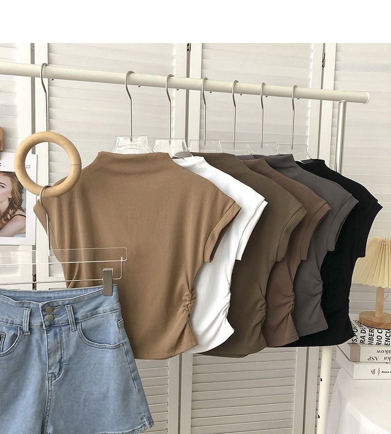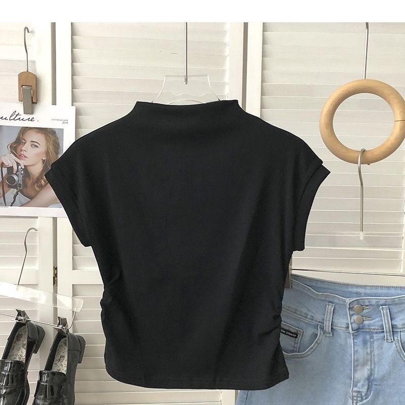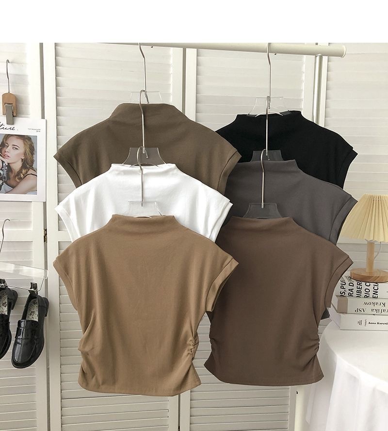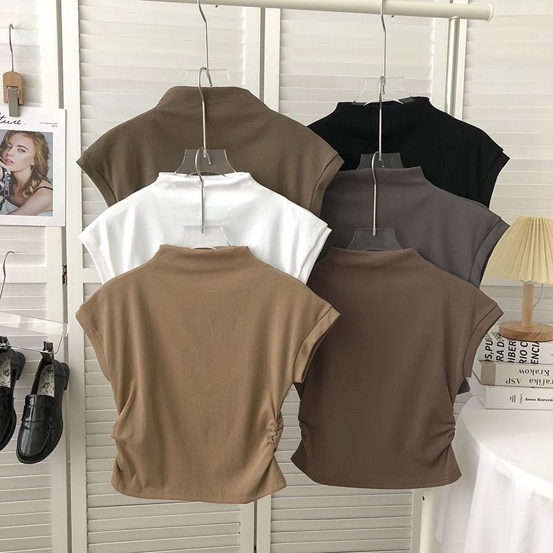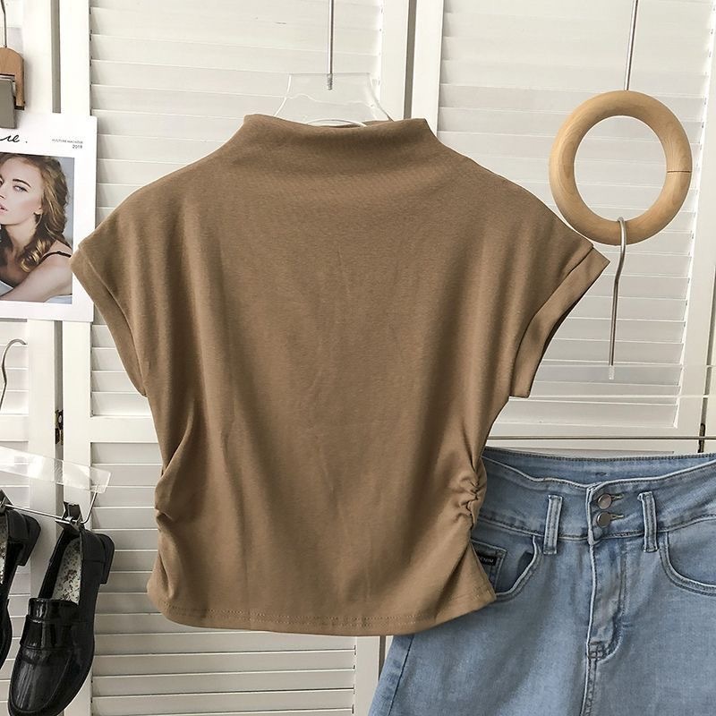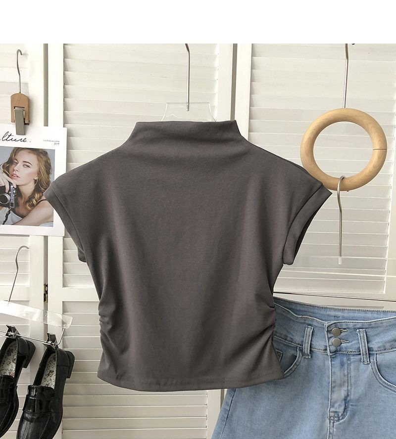 인터넷 인기있는 순수한 욕망 스타일 반 높은 목 반팔 티셔츠 여성 여름 2025 새로운 미국 스타일 복고풍 올 매치 나이 감소 웨스턴 스타일 탑스토어 가기