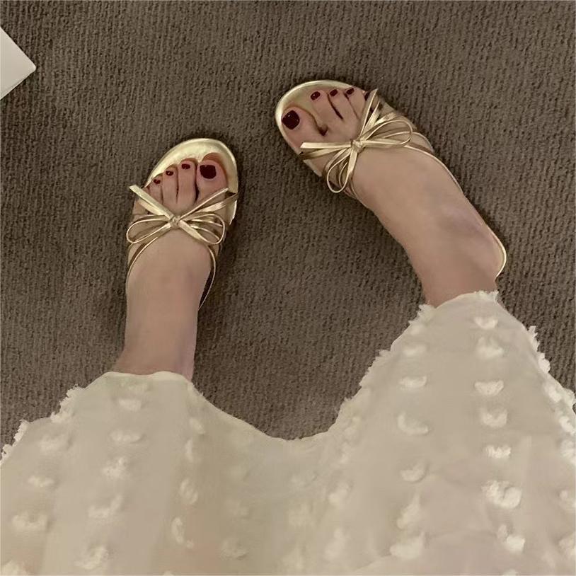 2025 여름 새로운 밤 바람 슬리퍼 국경 프랑스 실버 샌들 도매 요정 스타일 해변 평면 여성 신발스토어 가기