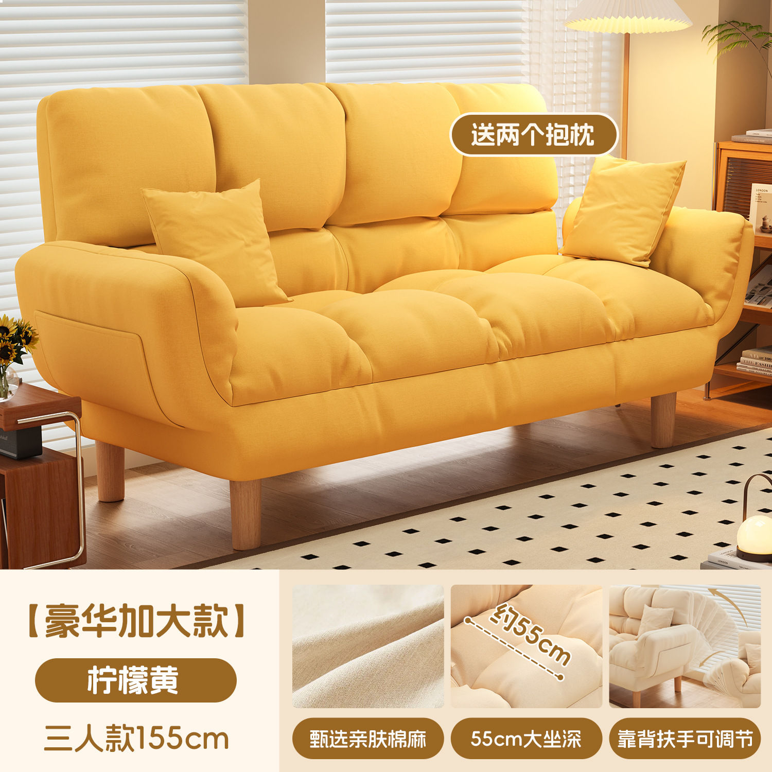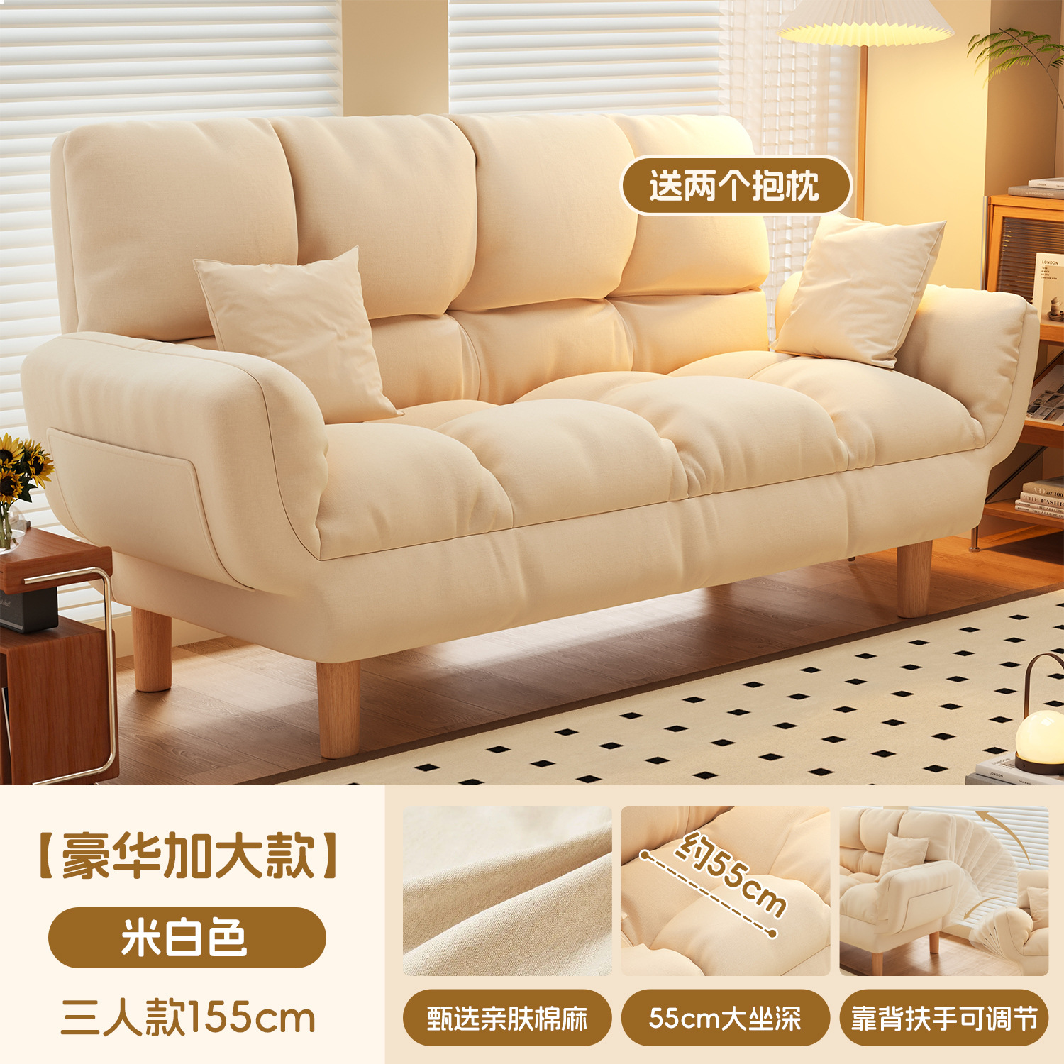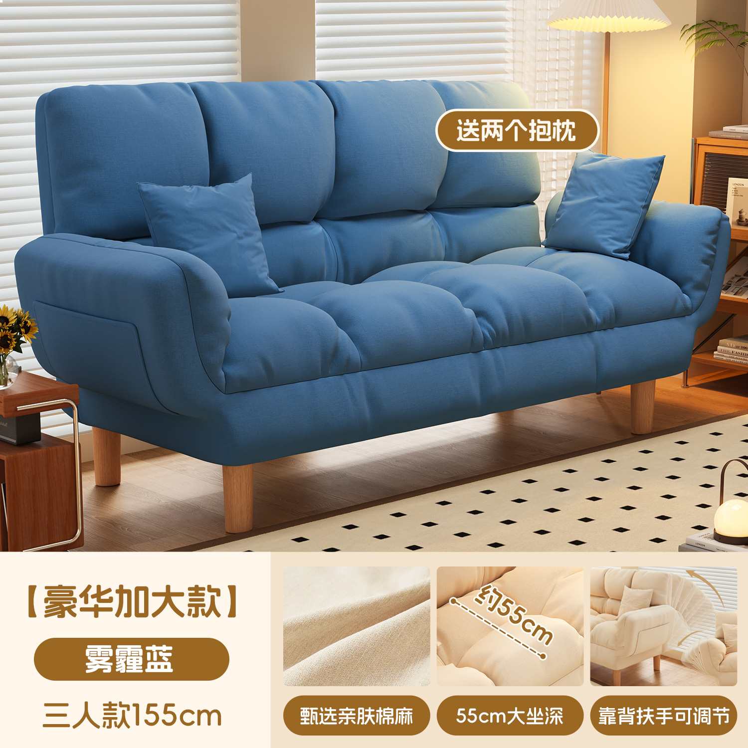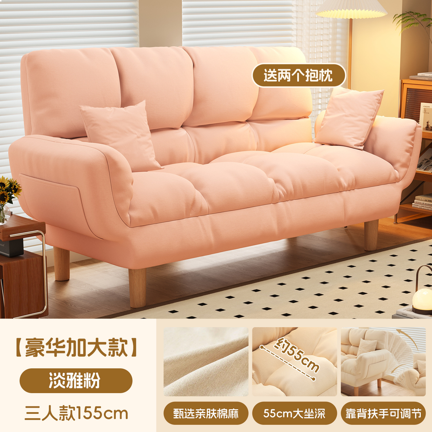 작은 아파트 직물 소파 거실 더블 3 인 스트레이트 게으른 작은 소파 임대 주택 접히는 소파 침대 이중 사용스토어 가기