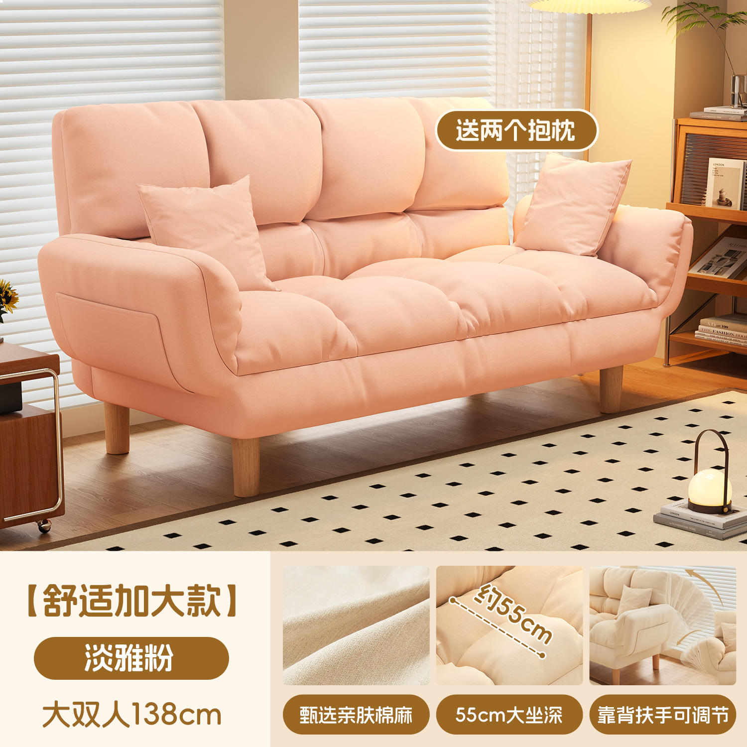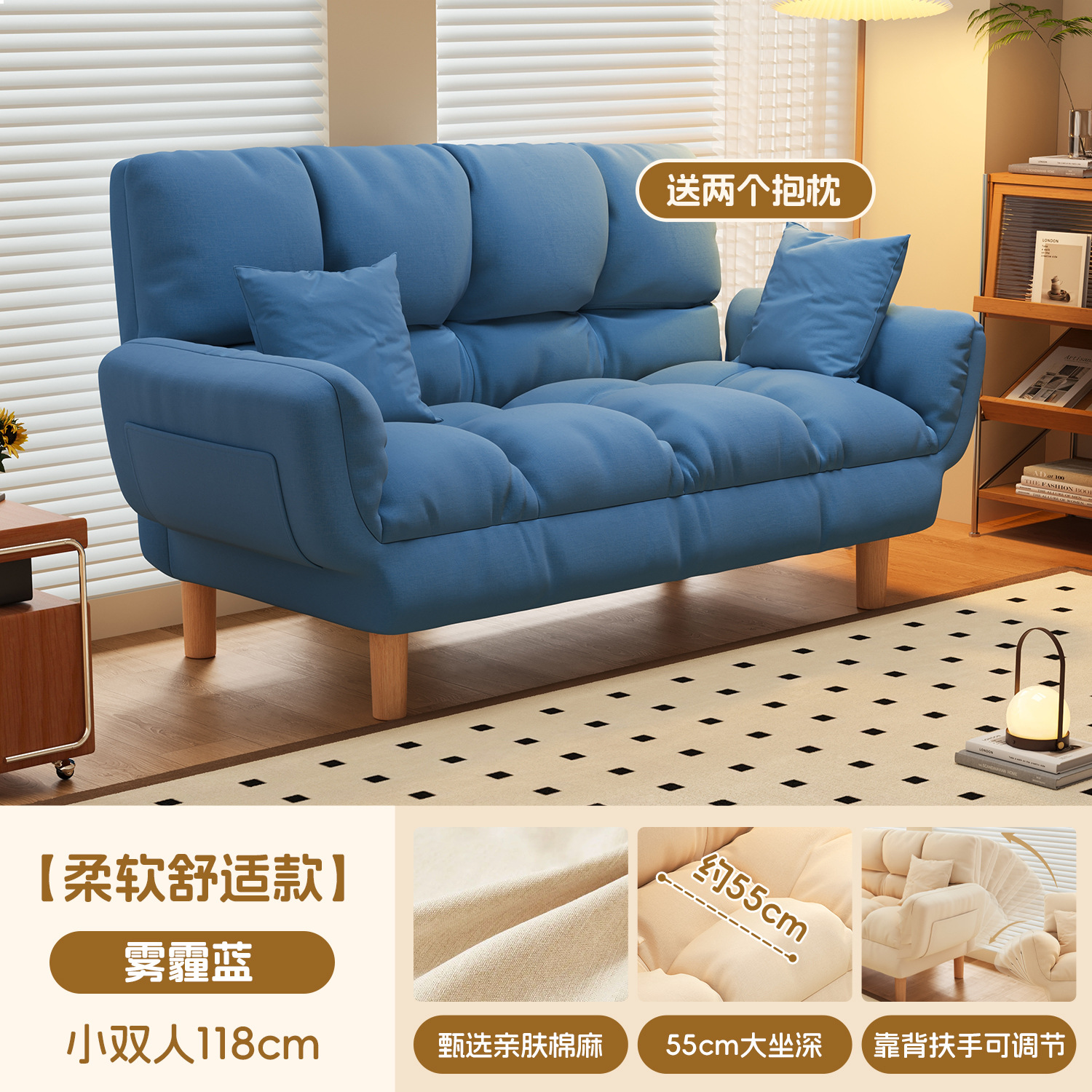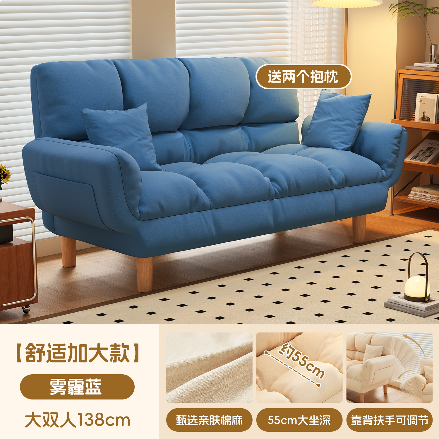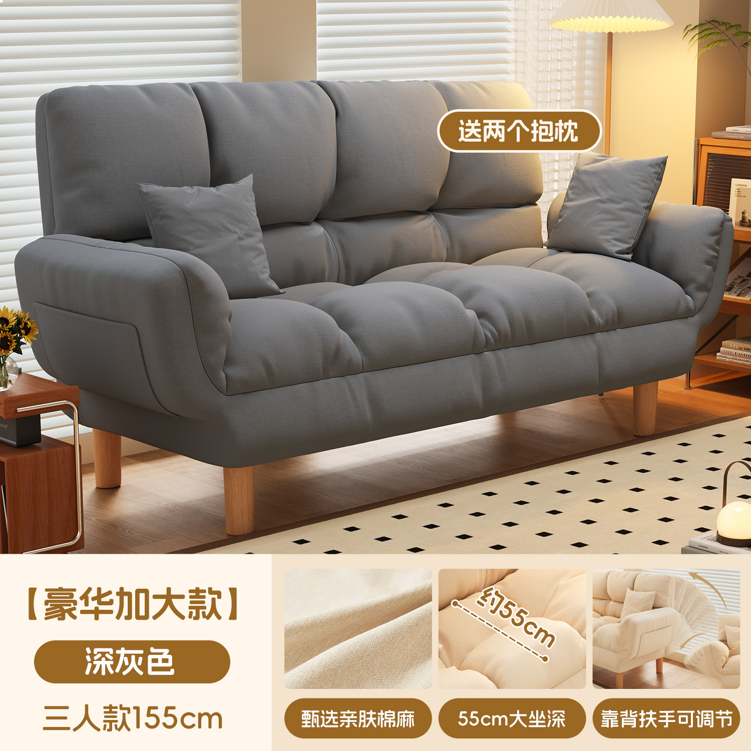 작은 아파트 직물 소파 거실 더블 3 인 스트레이트 게으른 작은 소파 임대 주택 접히는 소파 침대 이중 사용스토어 가기