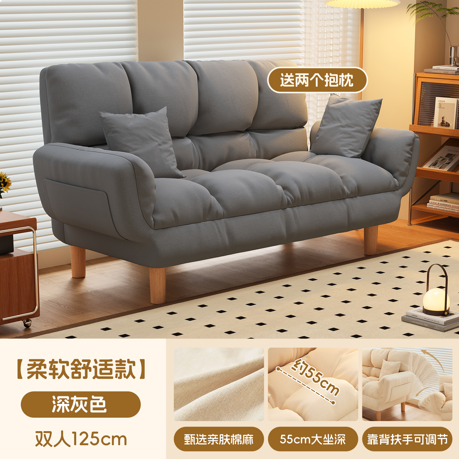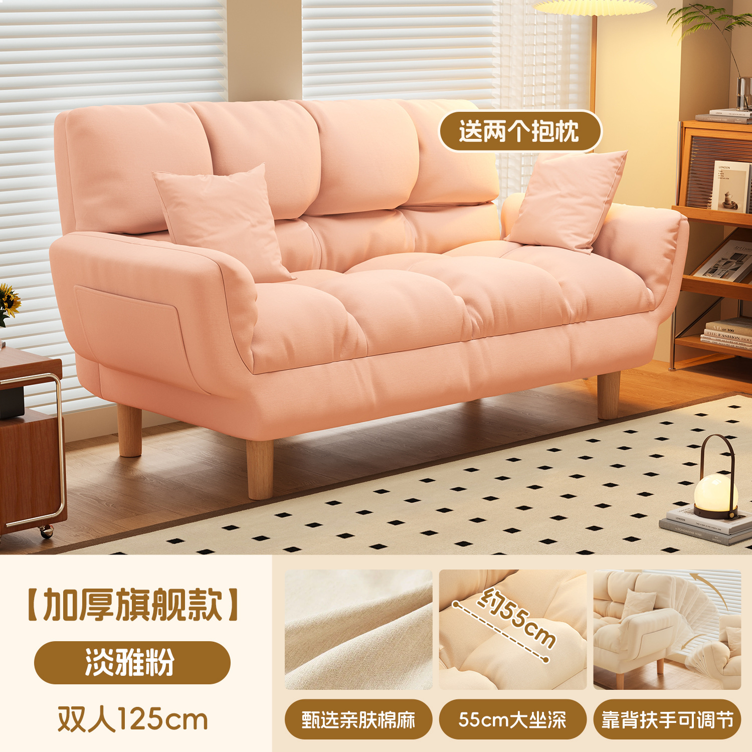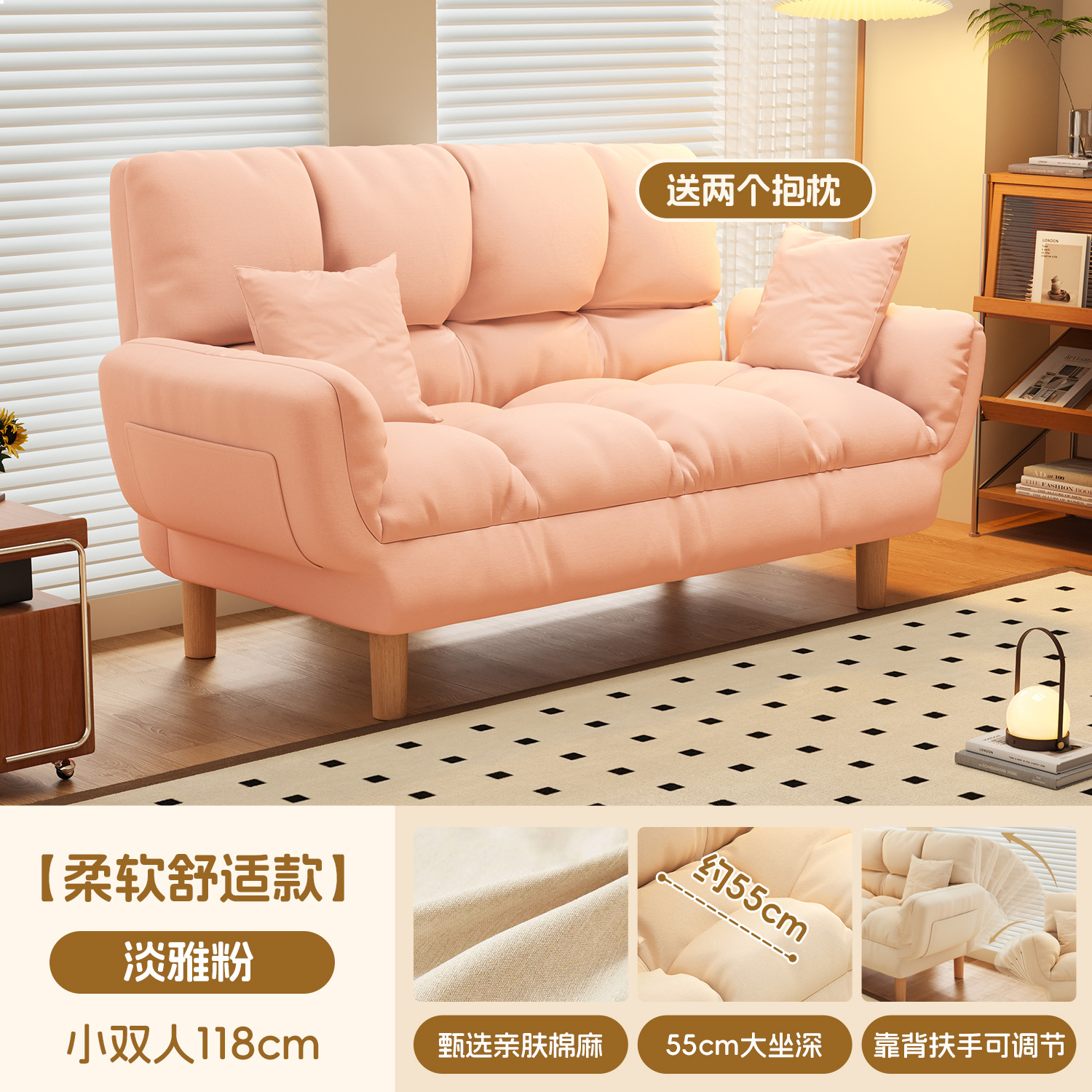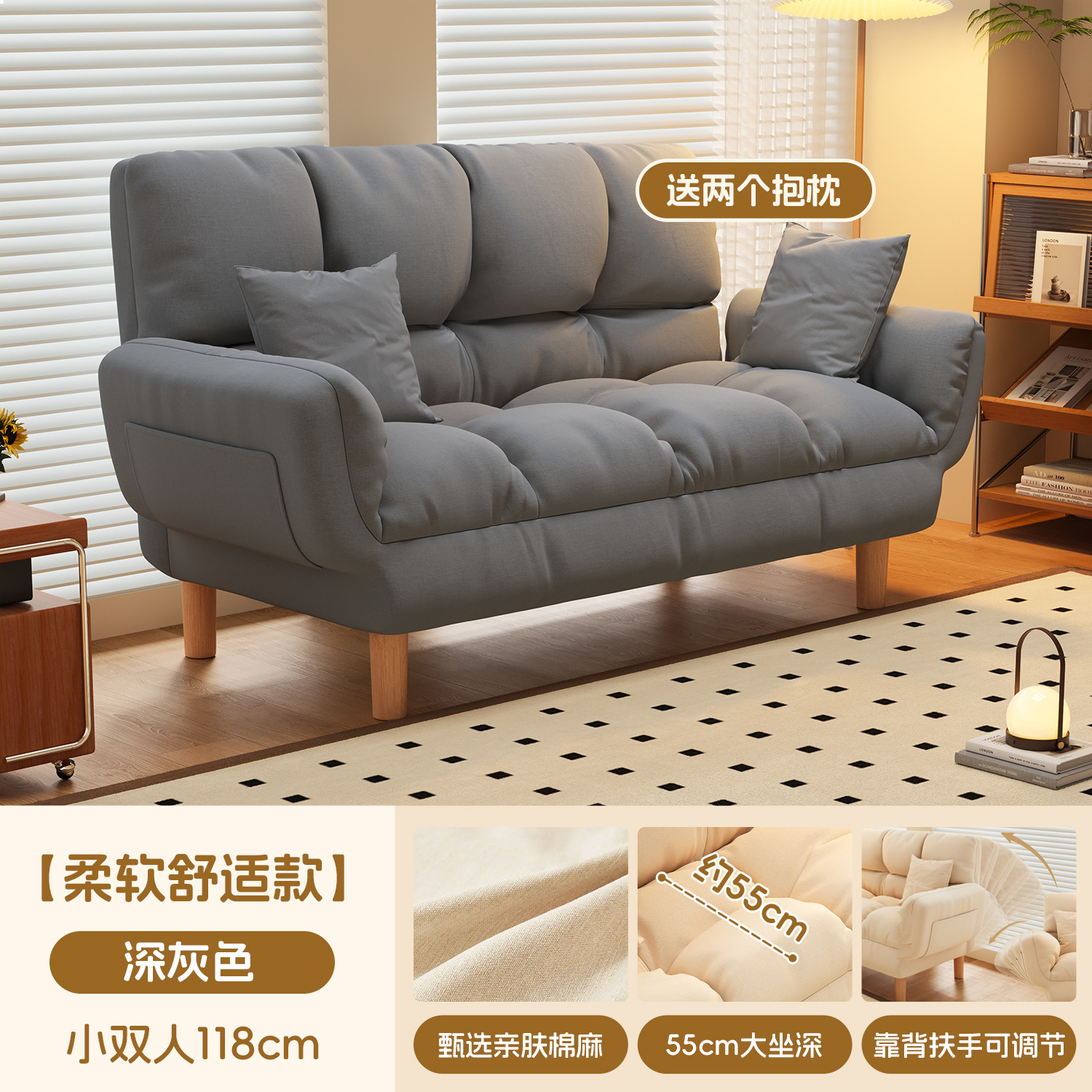 작은 아파트 직물 소파 거실 더블 3 인 스트레이트 게으른 작은 소파 임대 주택 접히는 소파 침대 이중 사용스토어 가기