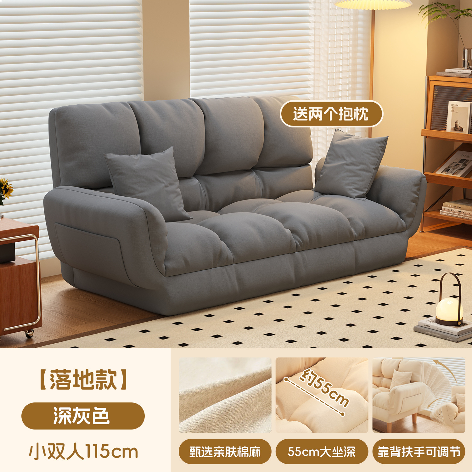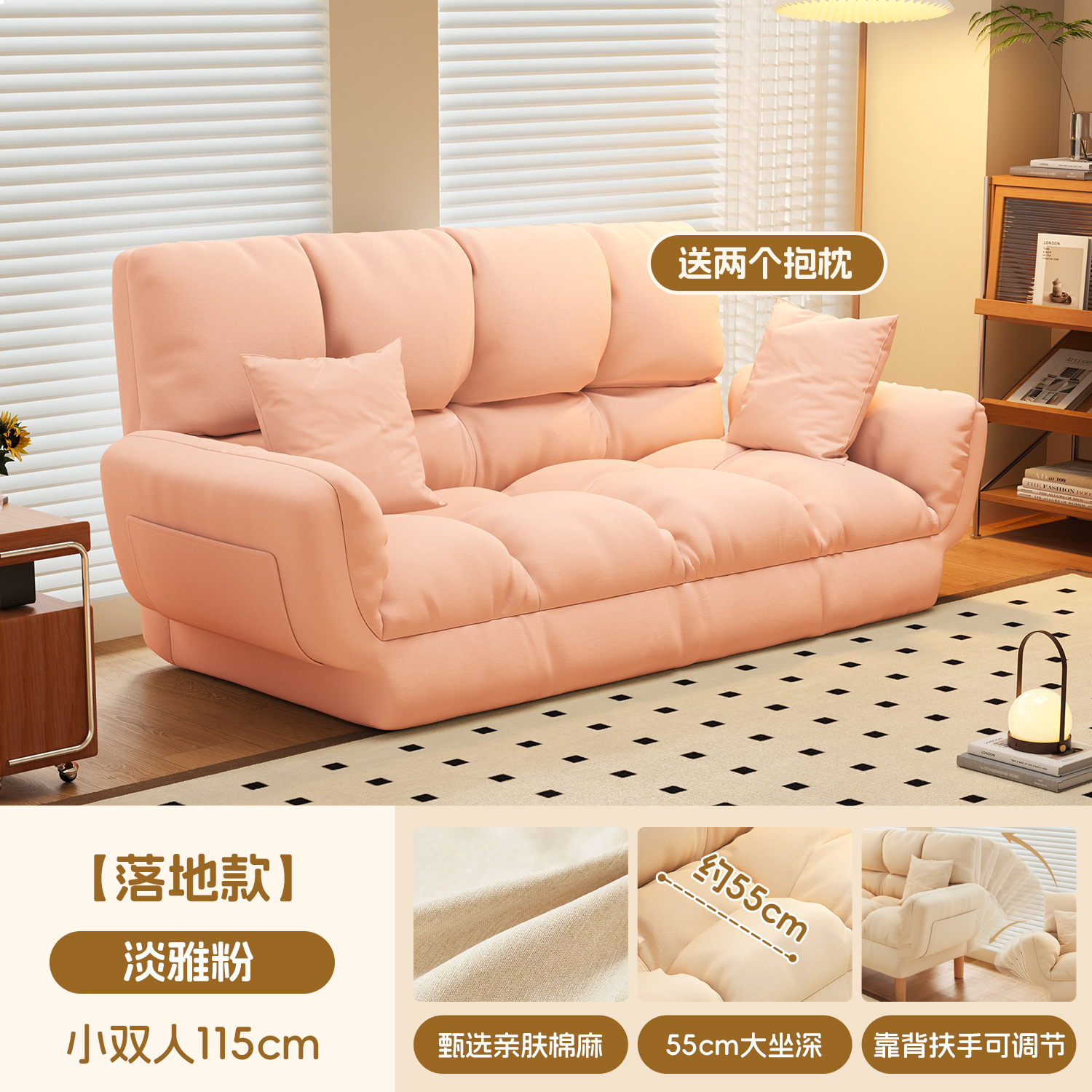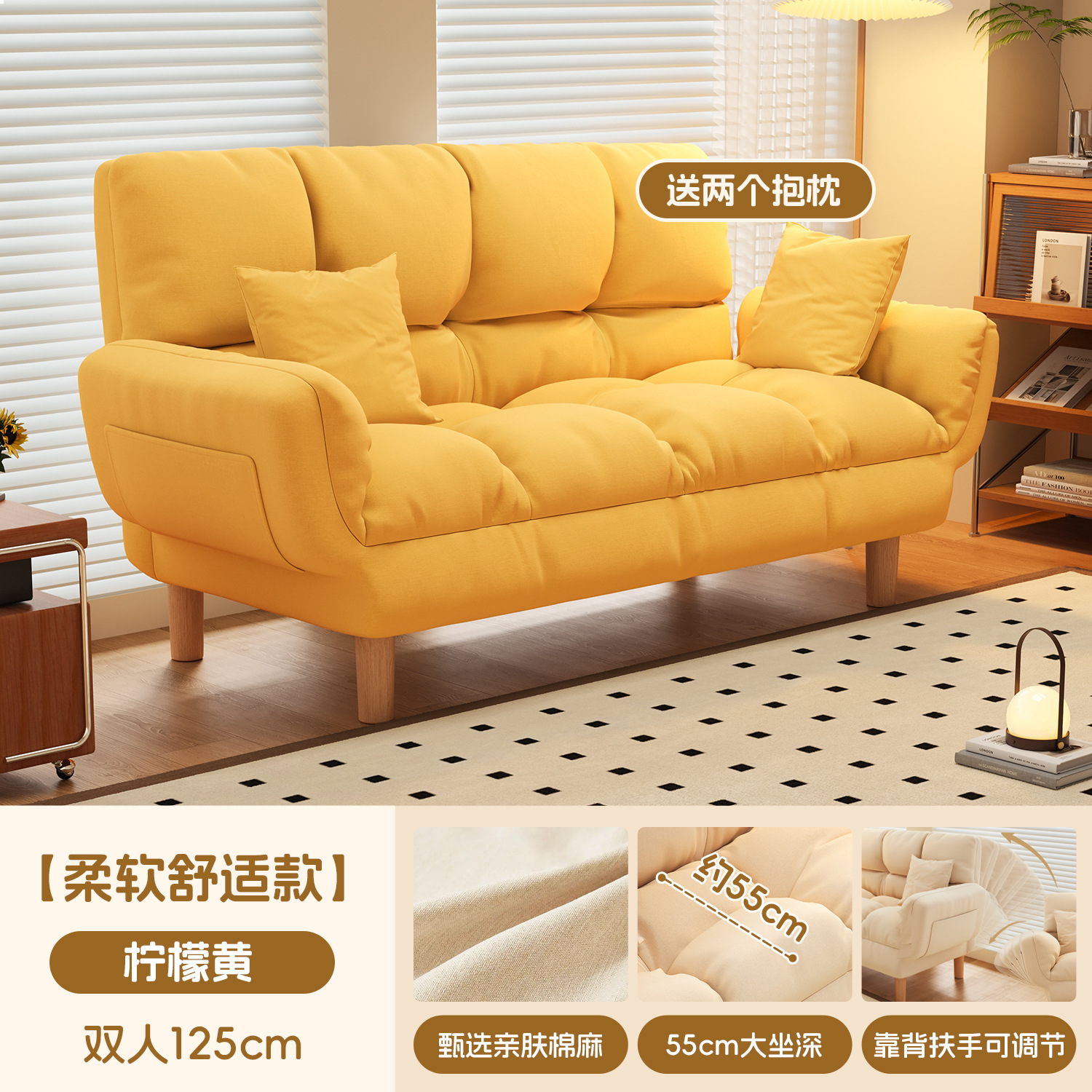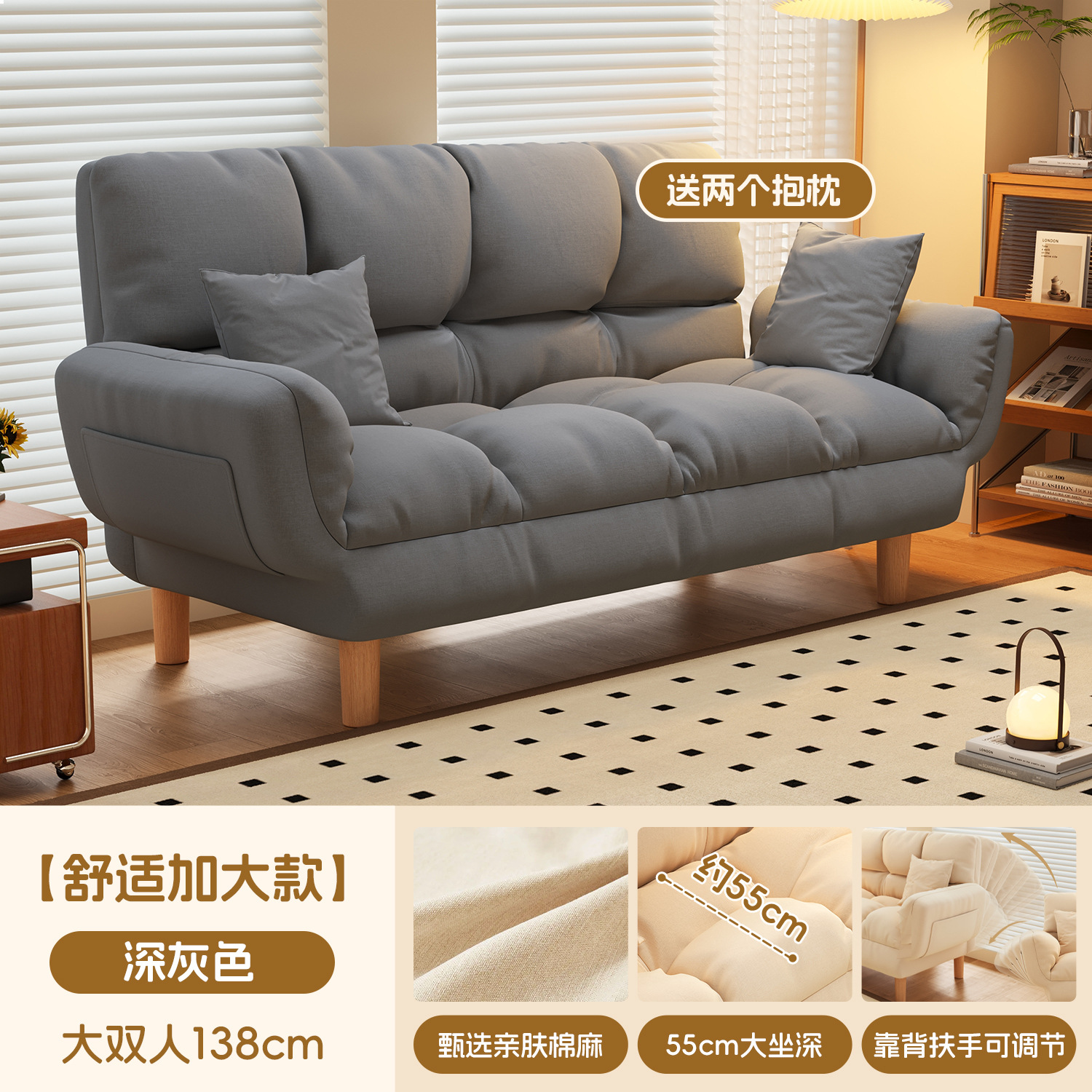 작은 아파트 직물 소파 거실 더블 3 인 스트레이트 게으른 작은 소파 임대 주택 접히는 소파 침대 이중 사용스토어 가기