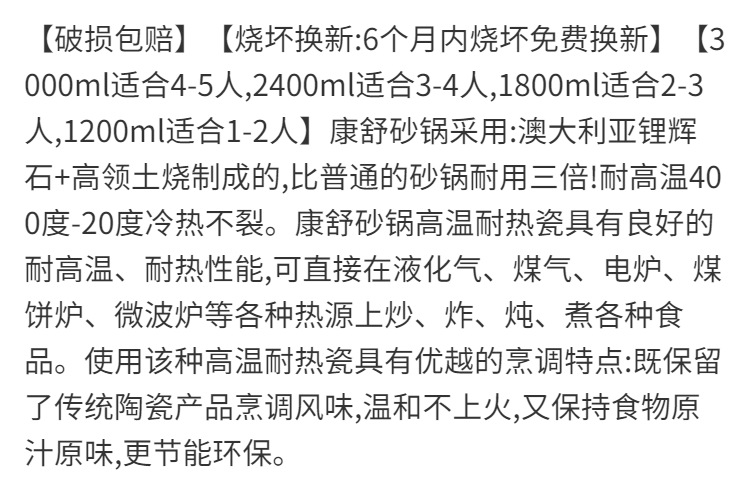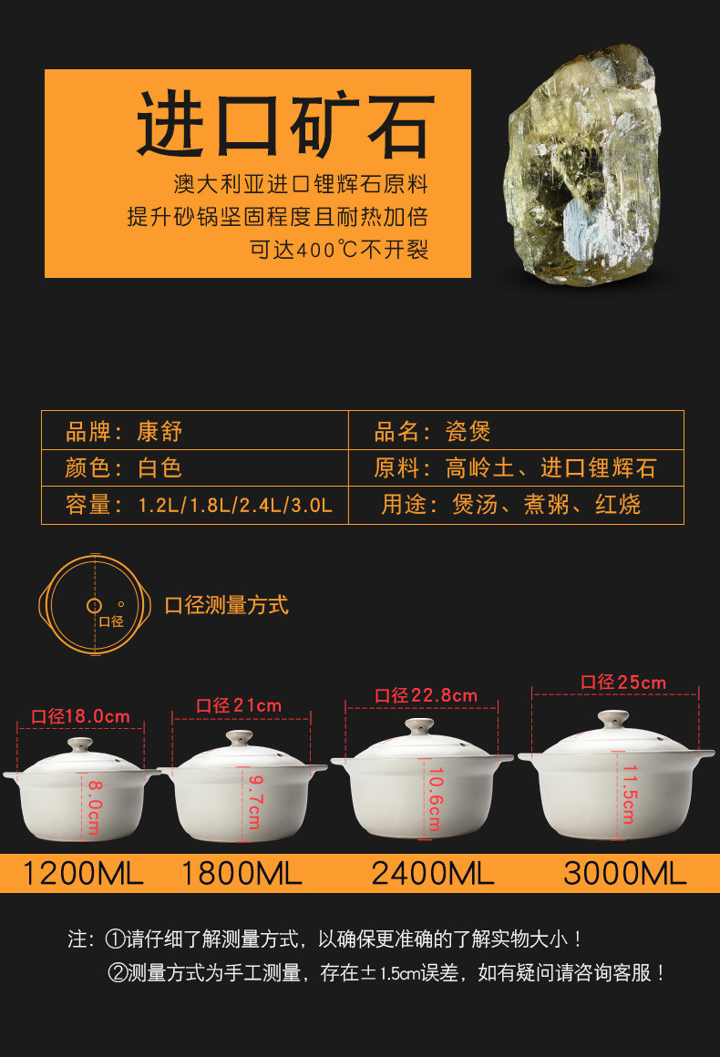Kangshu 캐서롤 대용량 고온 저항 건강 수프 냄비 넓은 입 모래 냄비 세라믹 냄비 스튜 냄비 가정용 돌 냄비스토어 가기