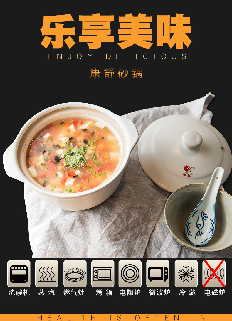 Kangshu 캐서롤 대용량 고온 저항 건강 수프 냄비 넓은 입 모래 냄비 세라믹 냄비 스튜 냄비 가정용 돌 냄비