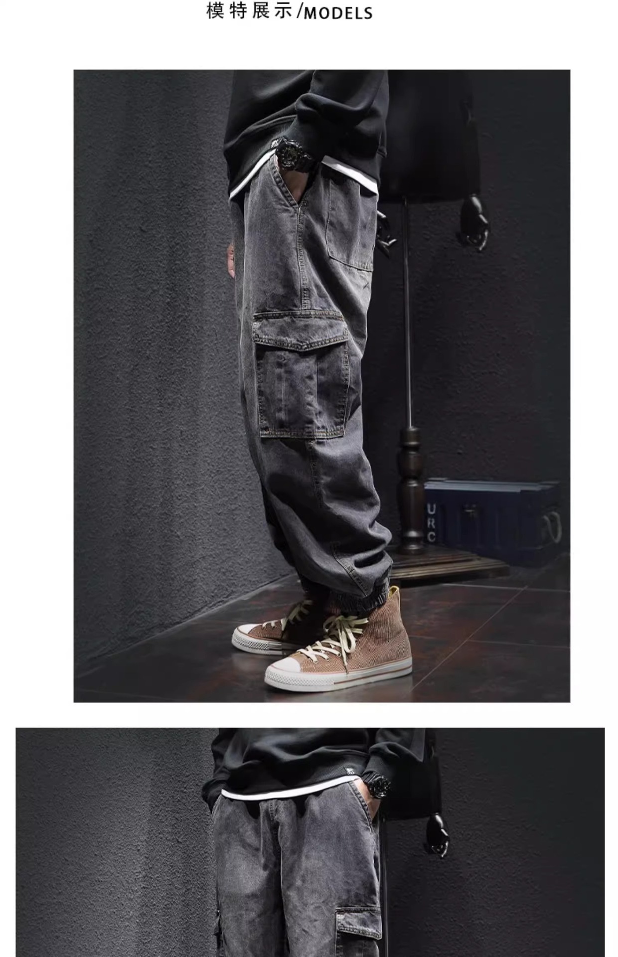 봄과 가을 미국 툴링 청바지 남성용 캐주얼 멀티 포켓 바지 느슨한 플러스 사이즈 엘라스토 허리 바지스토어 가기