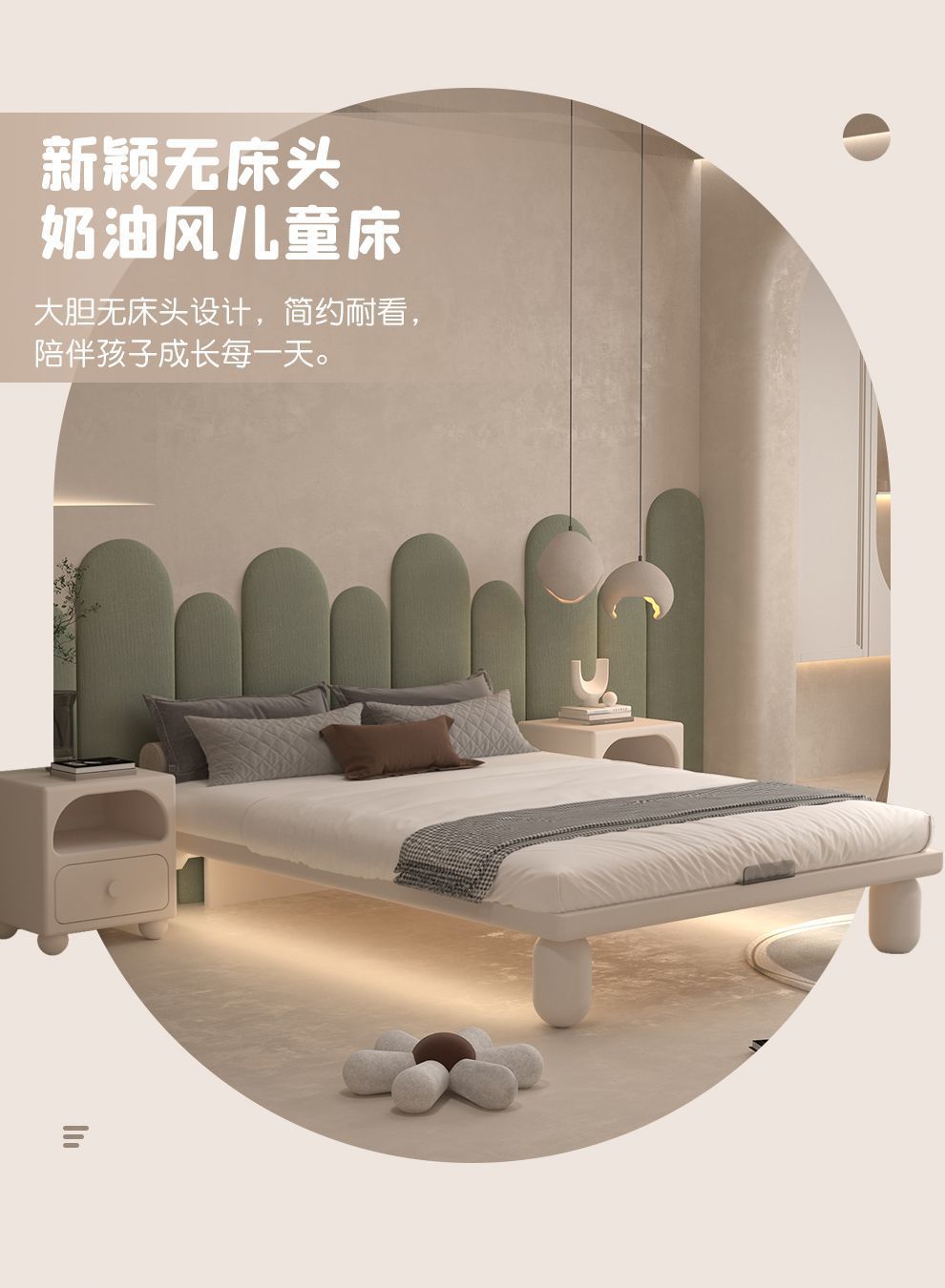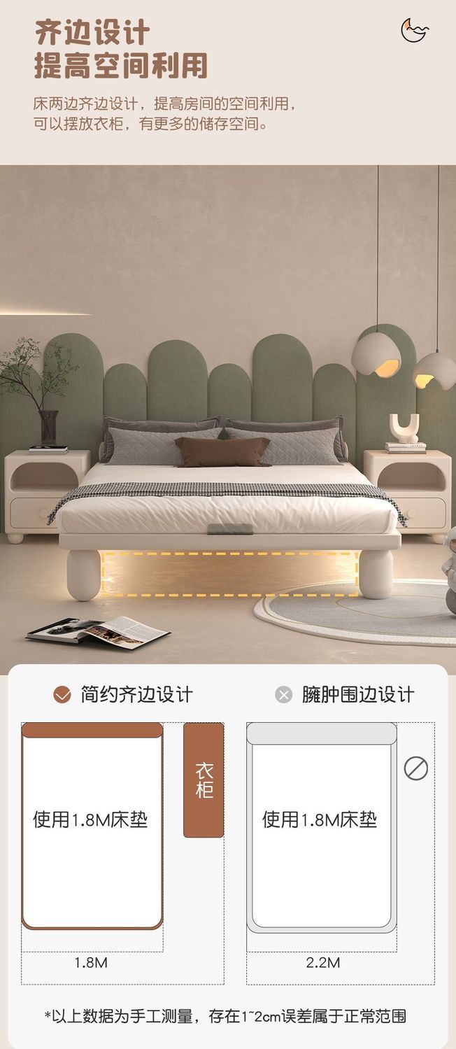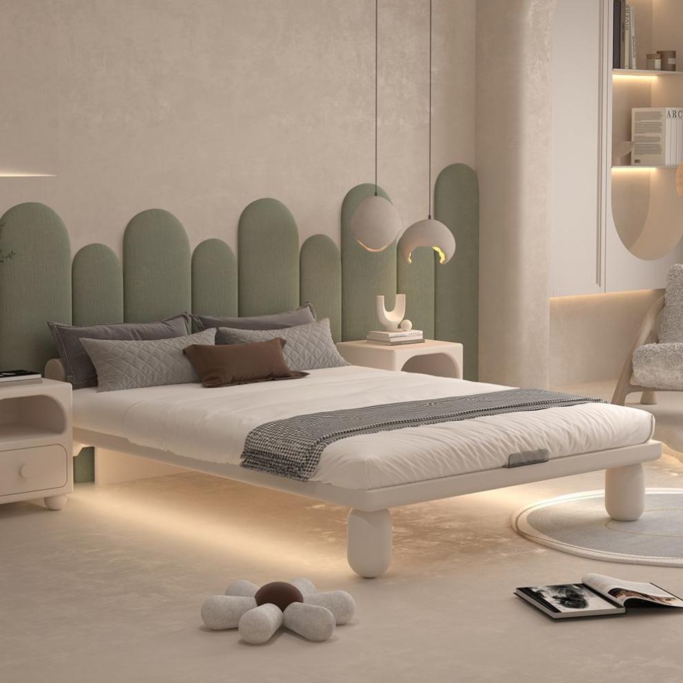 크림 어린이 단단한 나무 침대 모던 미니멀리스트 침대 모닝업 유도 램프 어린이 침실 서스펜션 침대스토어 가기