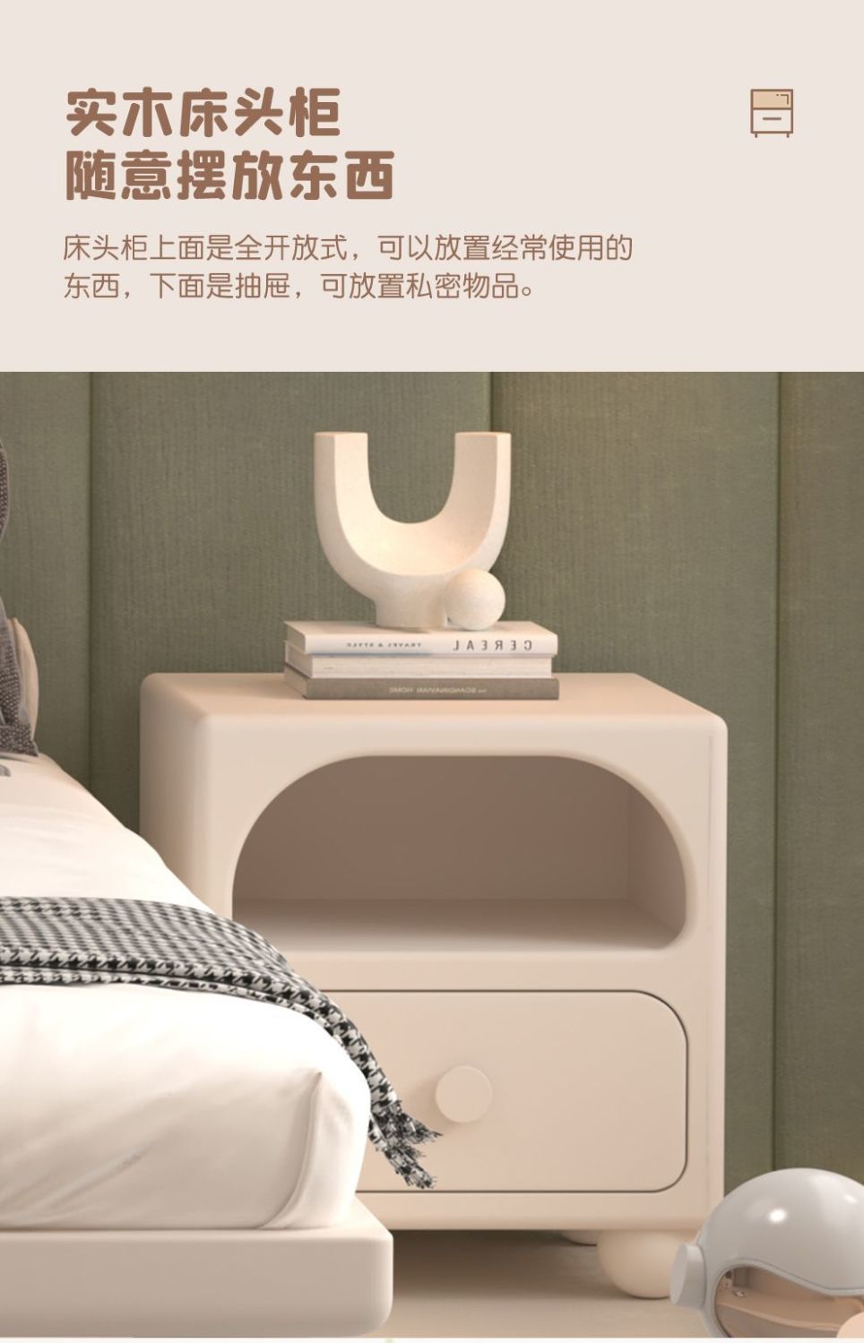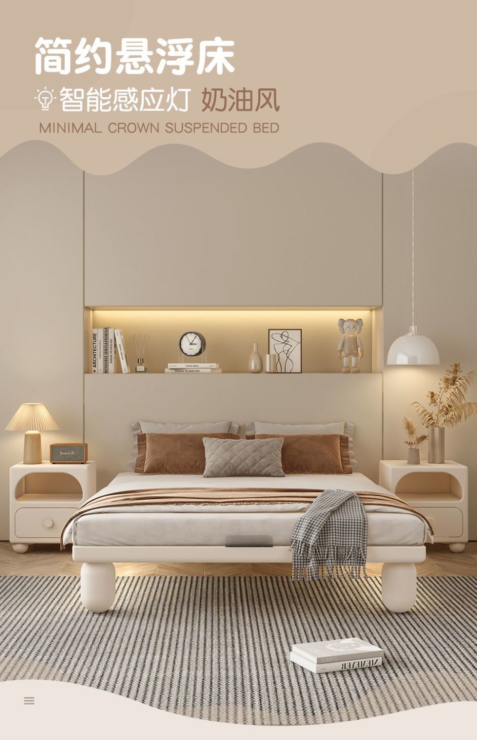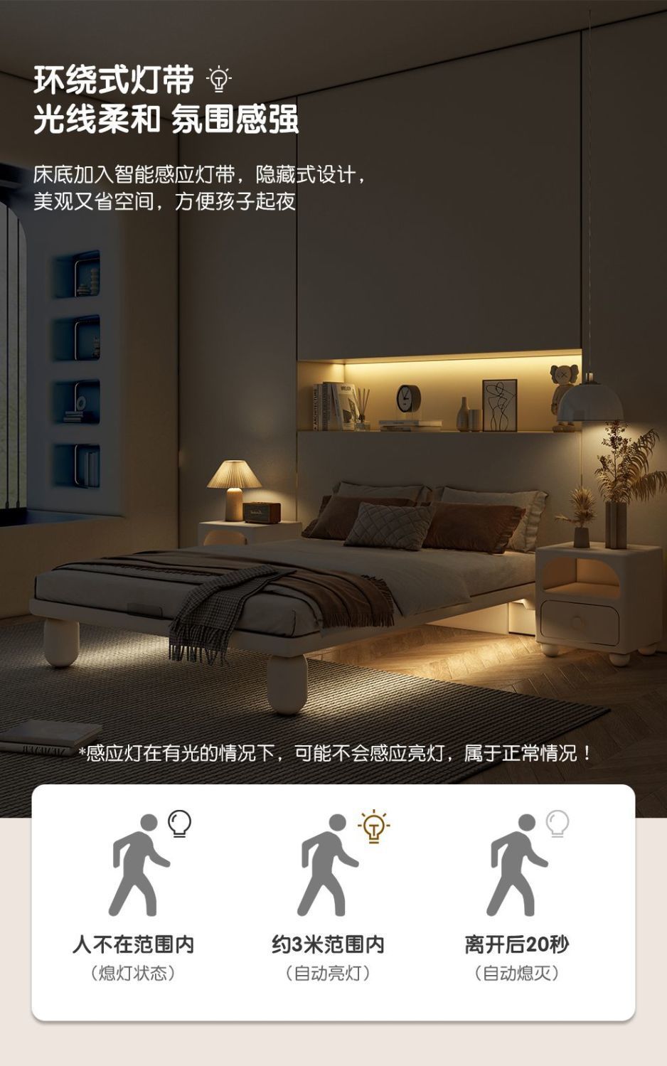 크림 어린이 단단한 나무 침대 모던 미니멀리스트 침대 모닝업 유도 램프 어린이 침실 서스펜션 침대스토어 가기