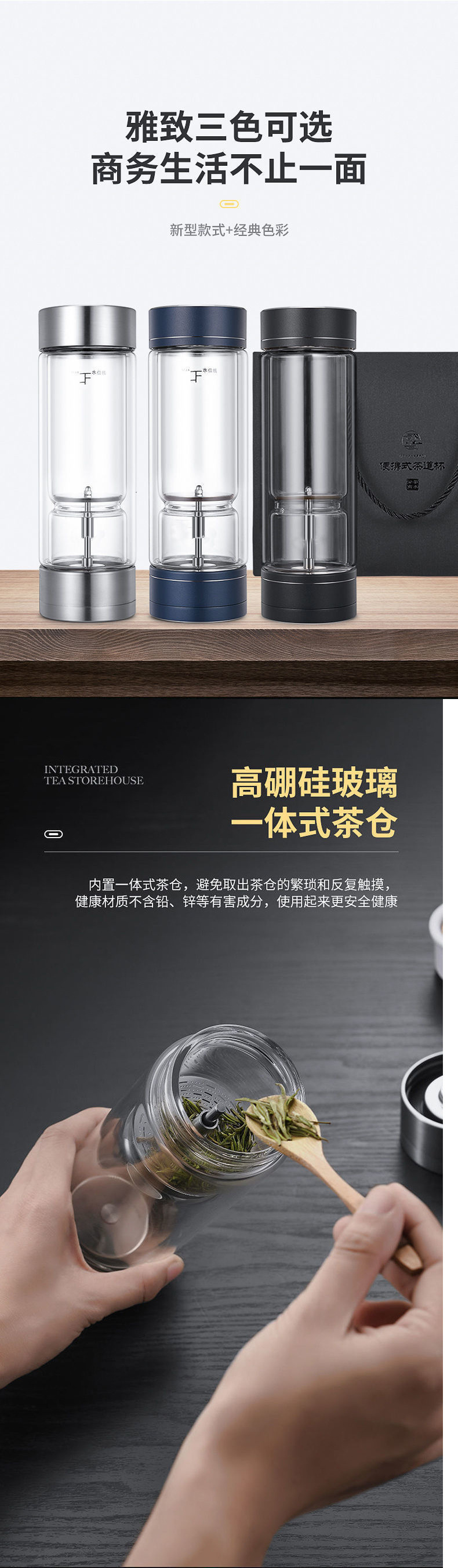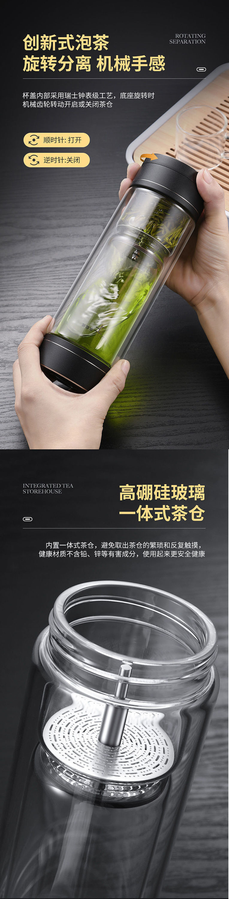 고급 이중층 유리 컵 차 분리 차 컵 남성과 여성의 휴대용 투명 단열 물 컵 회전 물 컵