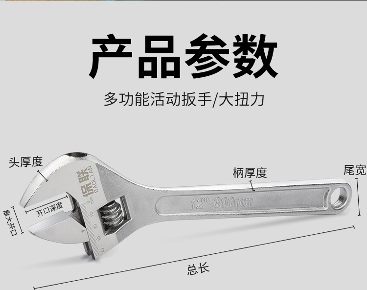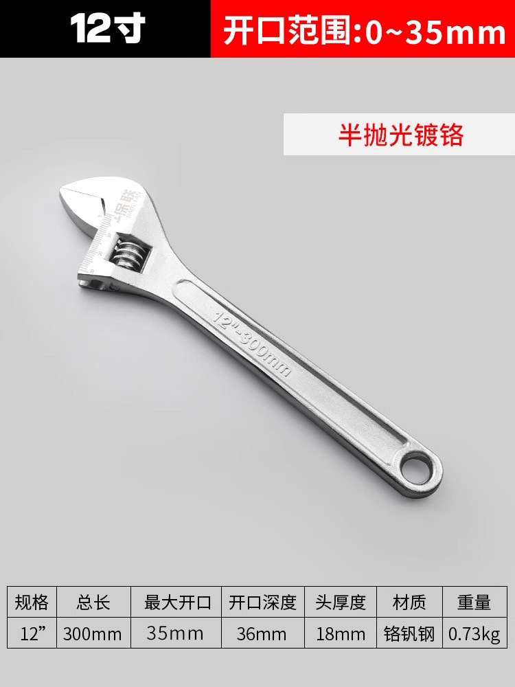 • [크롬 도금] 조정 가능한 렌치 12inch