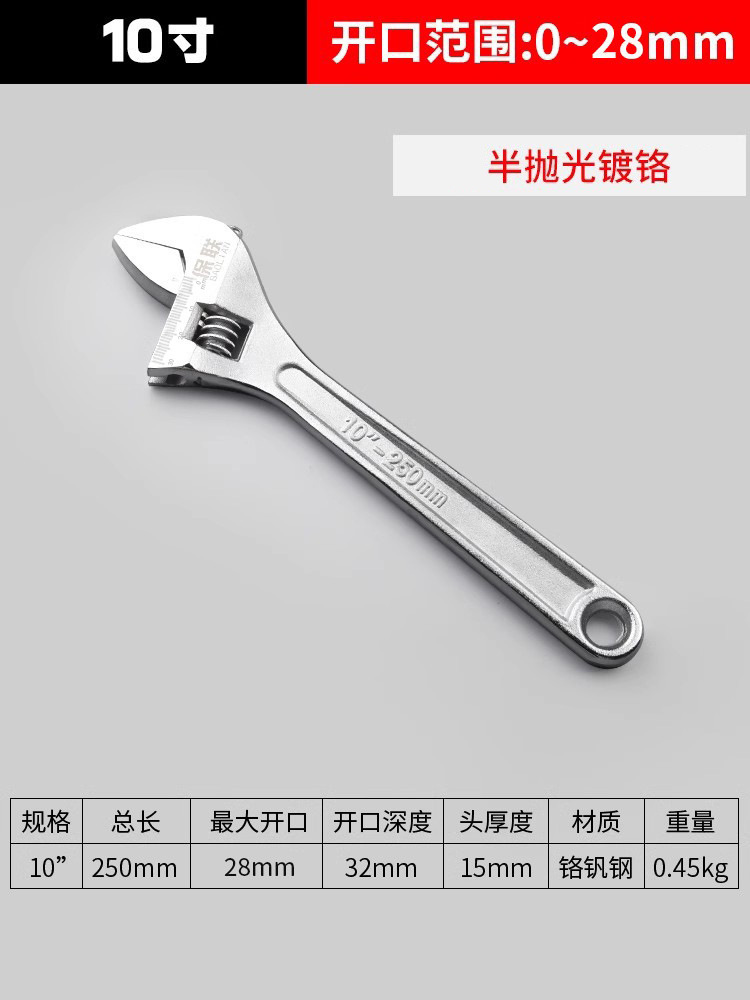 • [크롬 도금] 조정 가능한 렌치 10inch