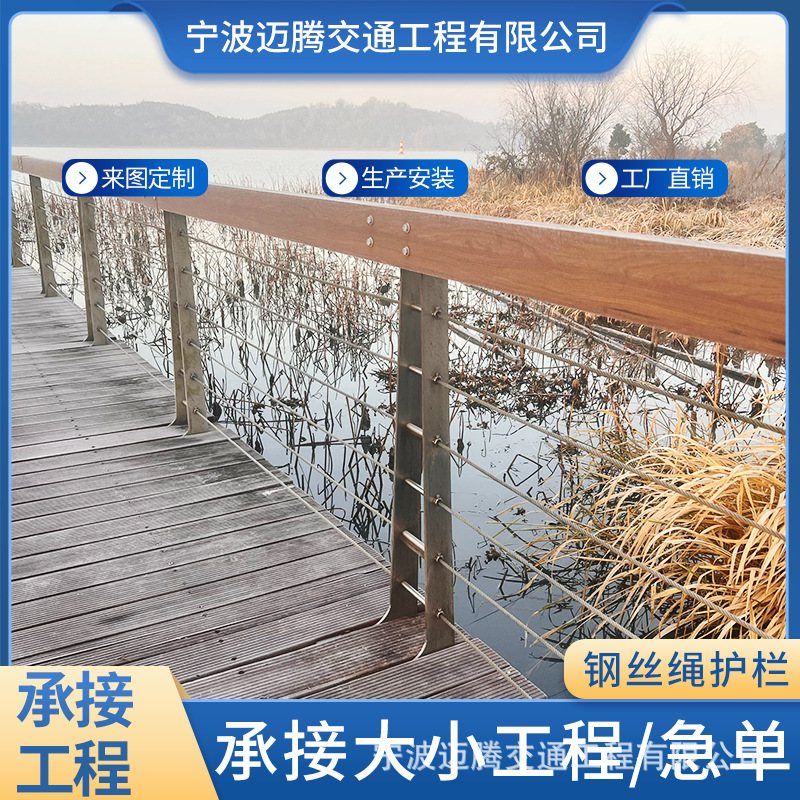 304 스테인레스 스틸 와이어 로프 난간 나무 난간 강 경치 좋은 공원 와이어 로프 안전 판자 도로 난간스토어 가기