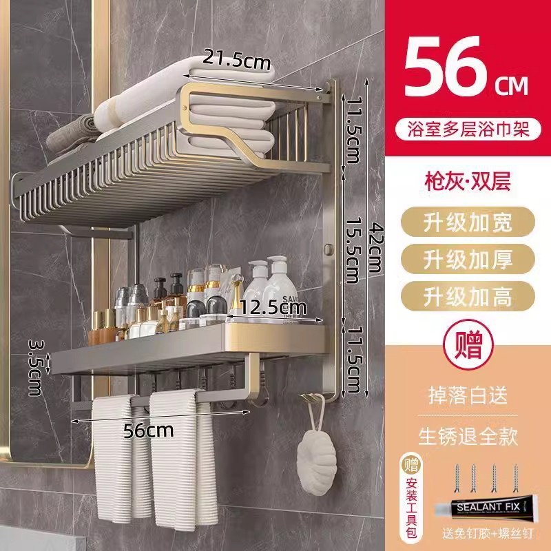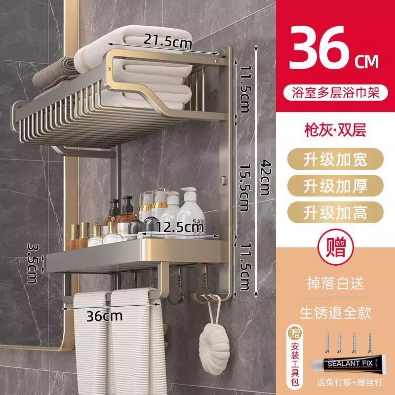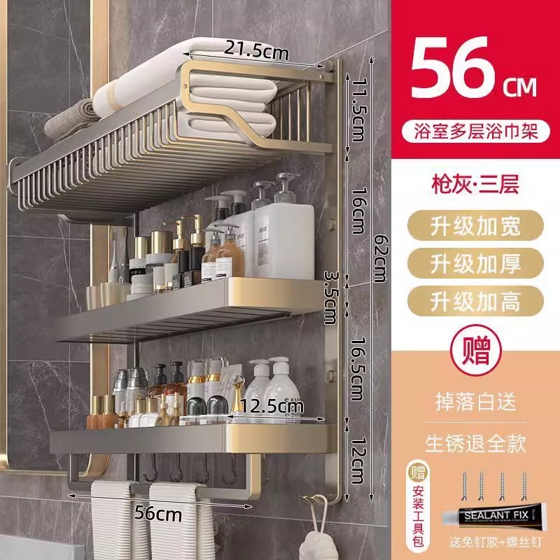• 두꺼운/공간 알루미늄 + 3단 수건걸이 60건 그레이(펀칭/펀칭 없음) 겸용 수건걸이
