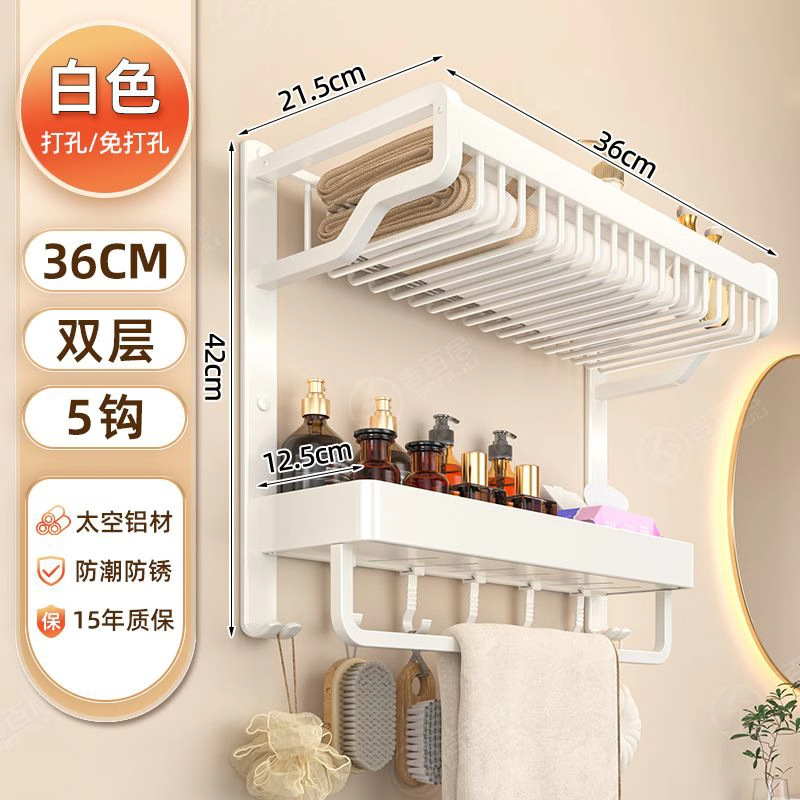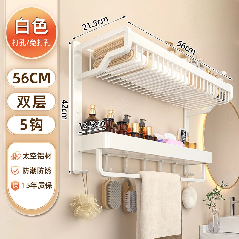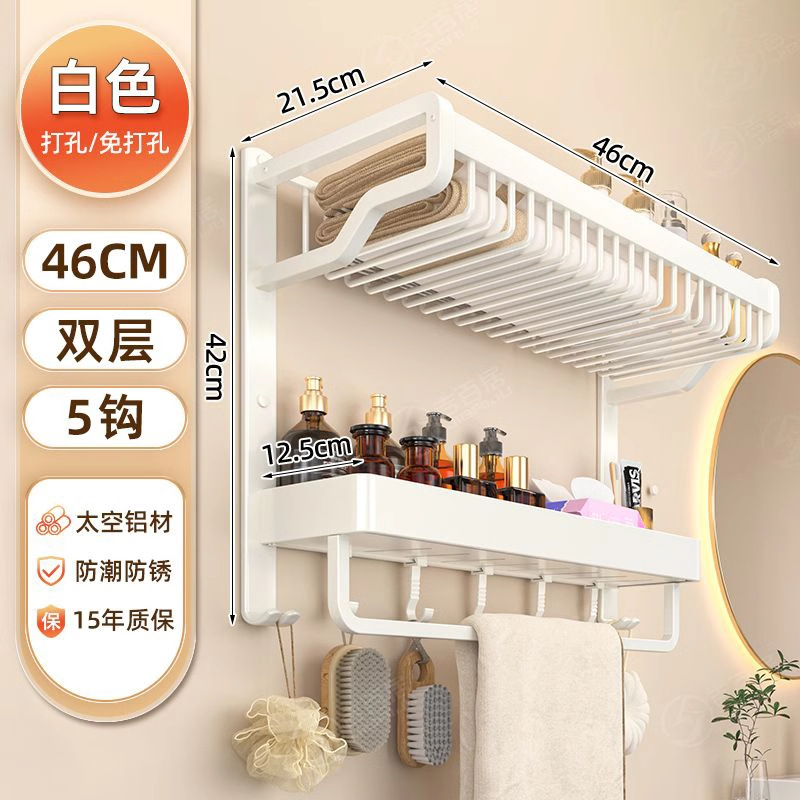 • 두꺼운 공간 알루미늄 + 더블 레이어 목욕 수건 걸이 50 유백색 (펀칭/펀칭 없음) 이중 용도 목욕 수건 걸이