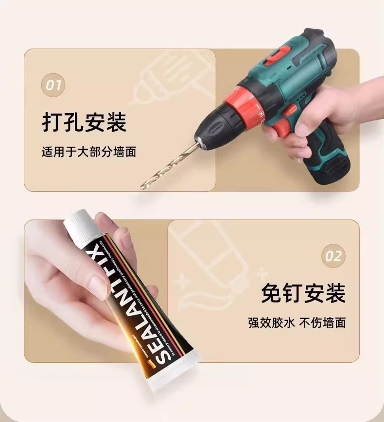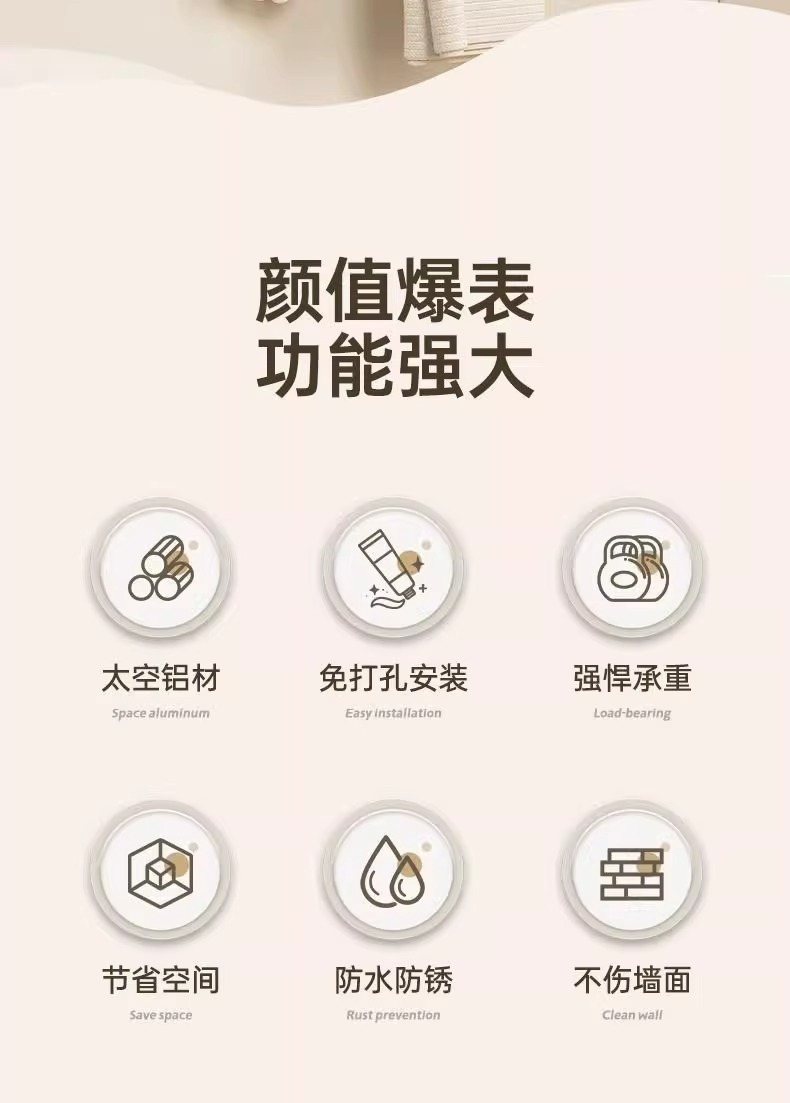 • 두꺼운/공간 알루미늄 + 3단 수건걸이 50 밀크 화이트(펀칭/펀칭 없음) 겸용 수건걸이