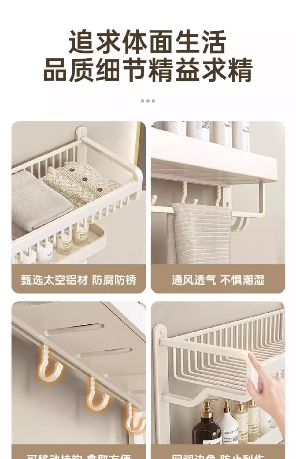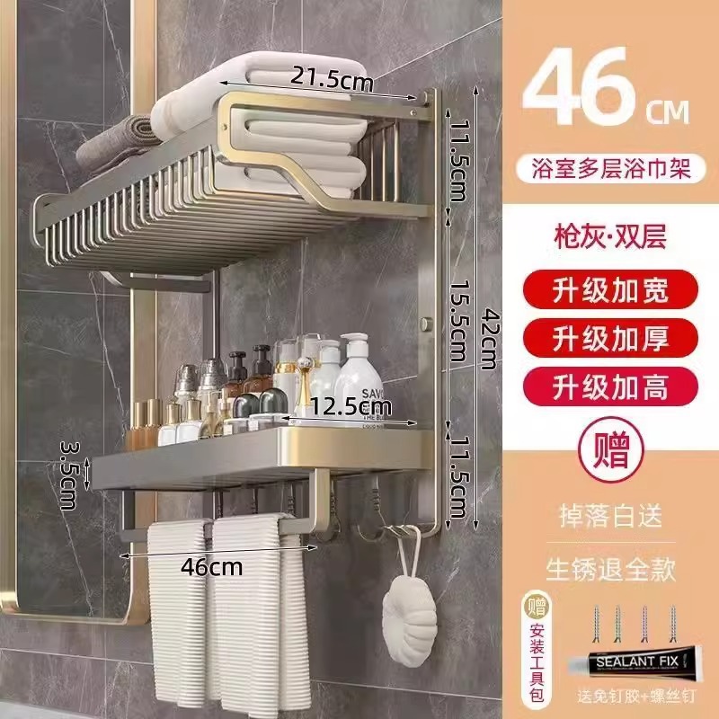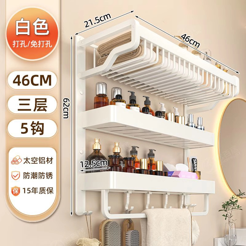 화장실 보관 랙 타월 랙 통합 욕실 선반 펀치 프리 화장실 타월 랙 욕실 공간 알루미늄